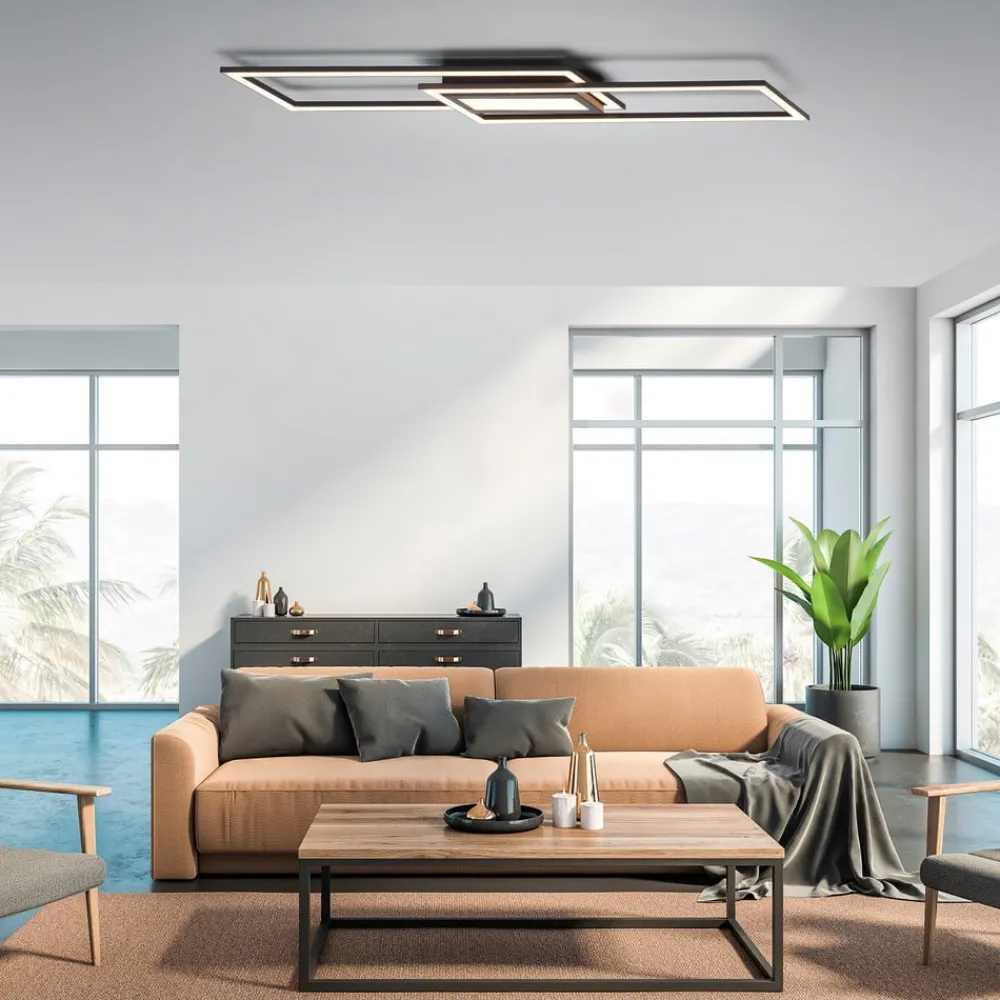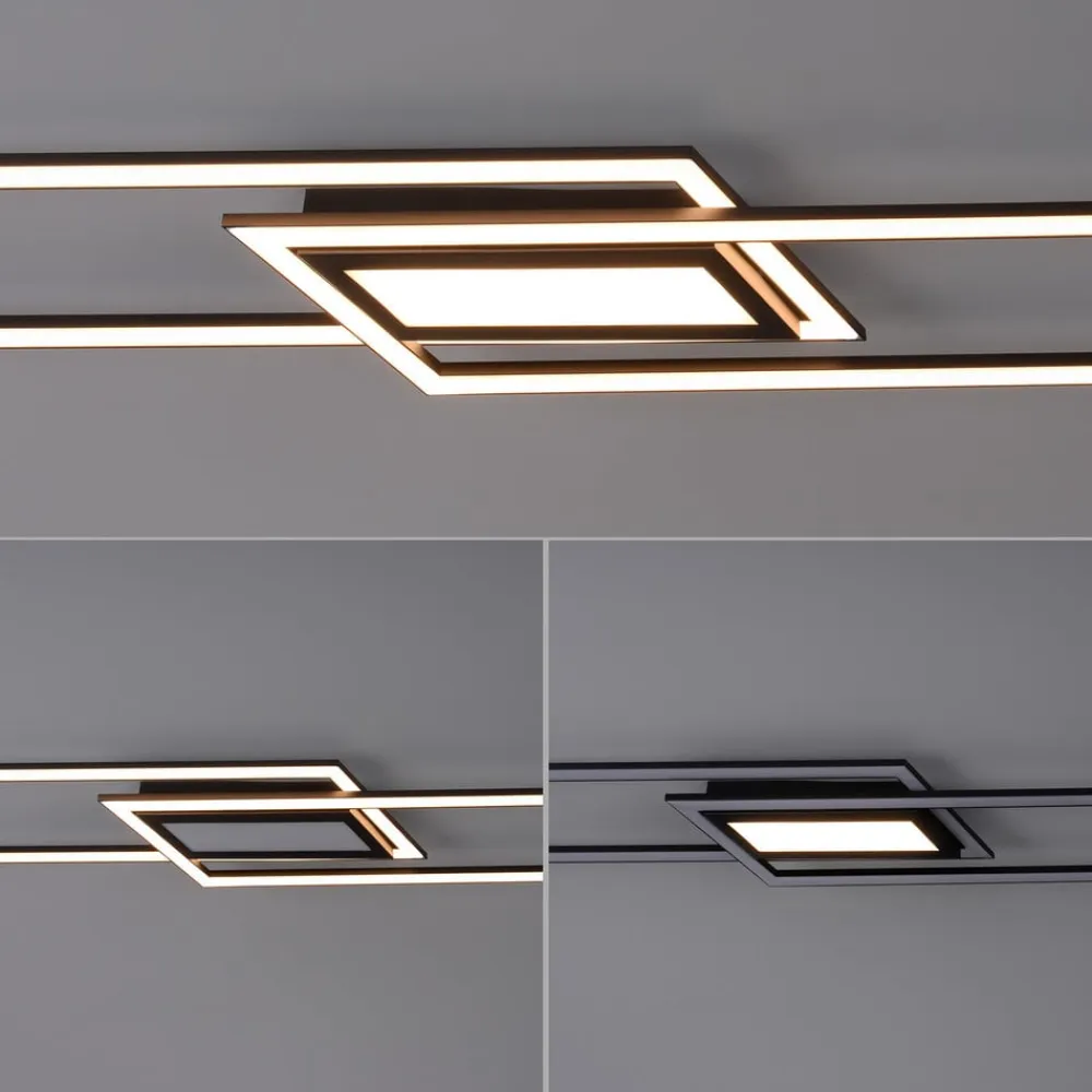 Sort LED-loftlampe Asmin med to rektangler, dæmpbar