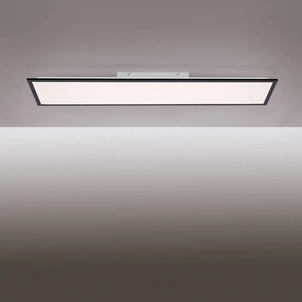 Det rektangulære flade LED-panel er moderne og minimalistisk og kommer i forgrunden med sin sorte ramme. Dette inkluderer den store plastdiffusor, der takket være overfladen udsender et homogent og frem for alt blændfrit lys. På grund af sin størrelse er Flat i stand til generøst at oplyse store rum og arbejdsområder. Med den medfølgende infrarøde fjernbetjening kan lysfarve og lysstyrken også indstilles og dermed perfekt tilpasses til den respektive situation. Dette betyder, at det rigtige lys kan simuleres til enhver tid på dagen og til enhver lejlighed. Takket være hukommelsesfunktionen kan indstillingerne gemmes til næste handling.