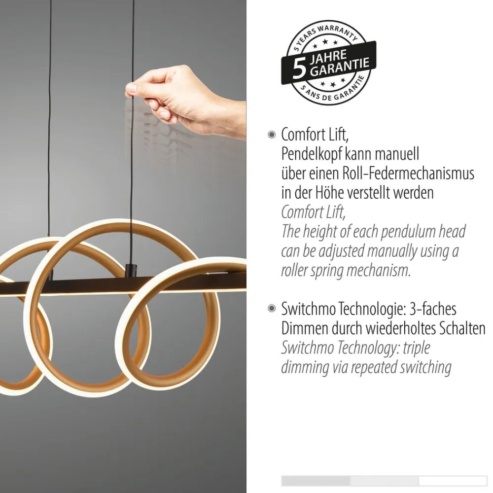 Lindby Pendellamper>LED-hængelampe Jaren, sort/brun, 100 cm, CCT