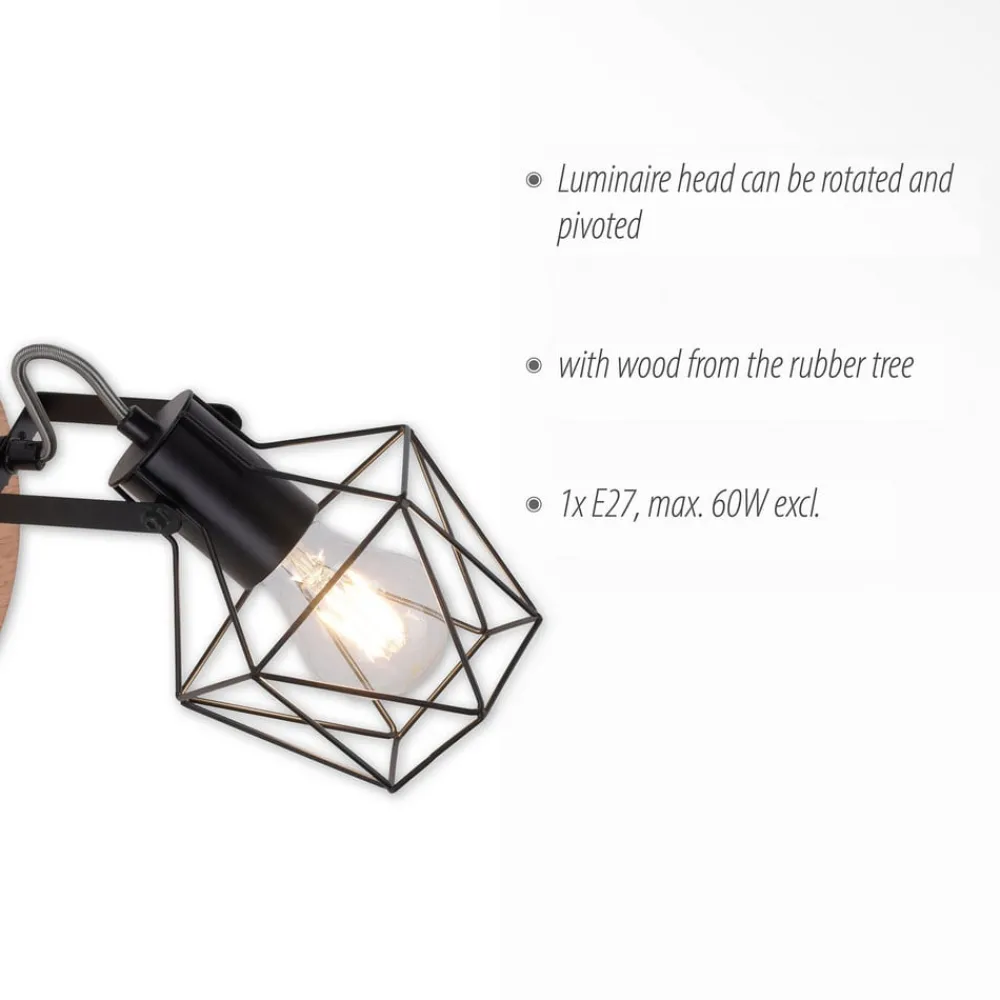 Væglampe Jaro justerbar sort/træ 1-lys