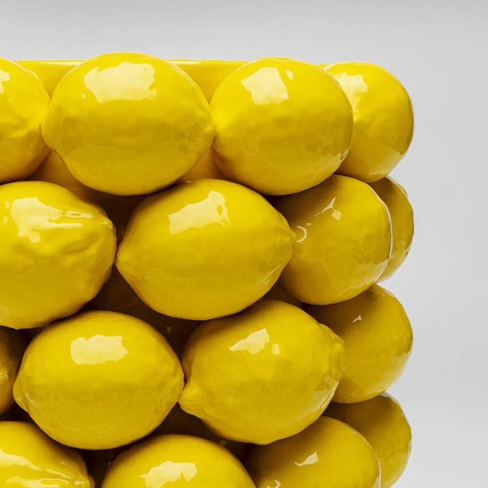 Lemon Juice-vase i cylinderform med citroner hele vejen rundt Denne Lemon Juice-vase i porcelæn er vores opskrift på en grå og ensartet bolig. Den gule farve er en rigtig humørspreder og giver et frisk pust og et dekorativt farvestænk til ethvert rum. Vasen er håndlavet af porcelæn og glaseret, hvilket gør den nem at rengøre. Hver vase er unik.
