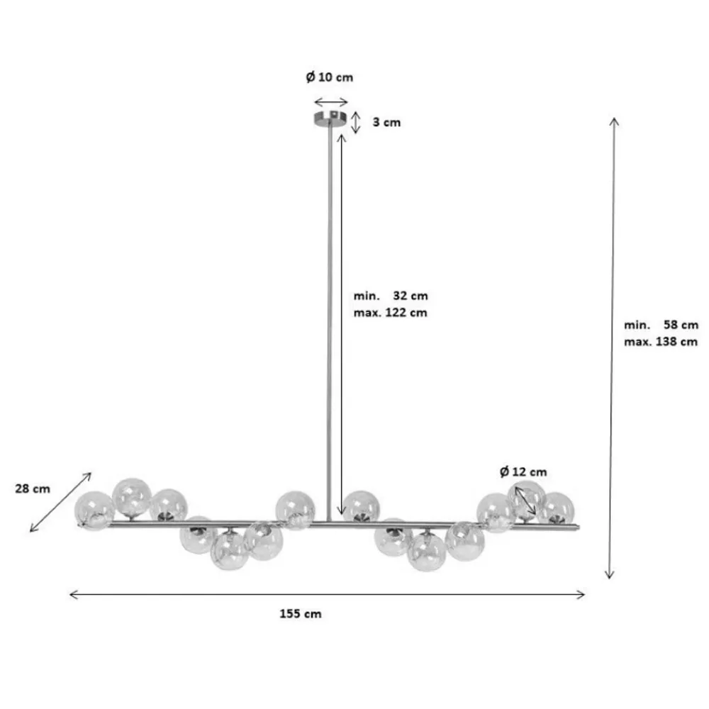 - Ø glaskugle 12 cm, baldakin – Ø 10 cm, højde 3 cm, stanglængde 122 cm