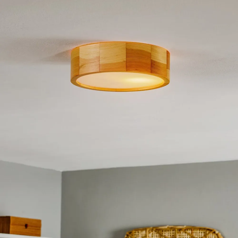 Envostar Kerio loftlampen kombinerer moderne design med den naturlige skønhed af træ og glas. Med en diameter på 27 cm og en stilfuld kombination af naturlig fyrretræ og satineret glas passer denne lampe perfekt ind i forskellige boligområder som stuen, soveværelset, entreen og spisestuen. Muligheden for at styre lampen via en ekstern dæmper giver fleksibilitet i lysdesignet og gør det muligt at tilpasse det til forskellige stemninger og behov.