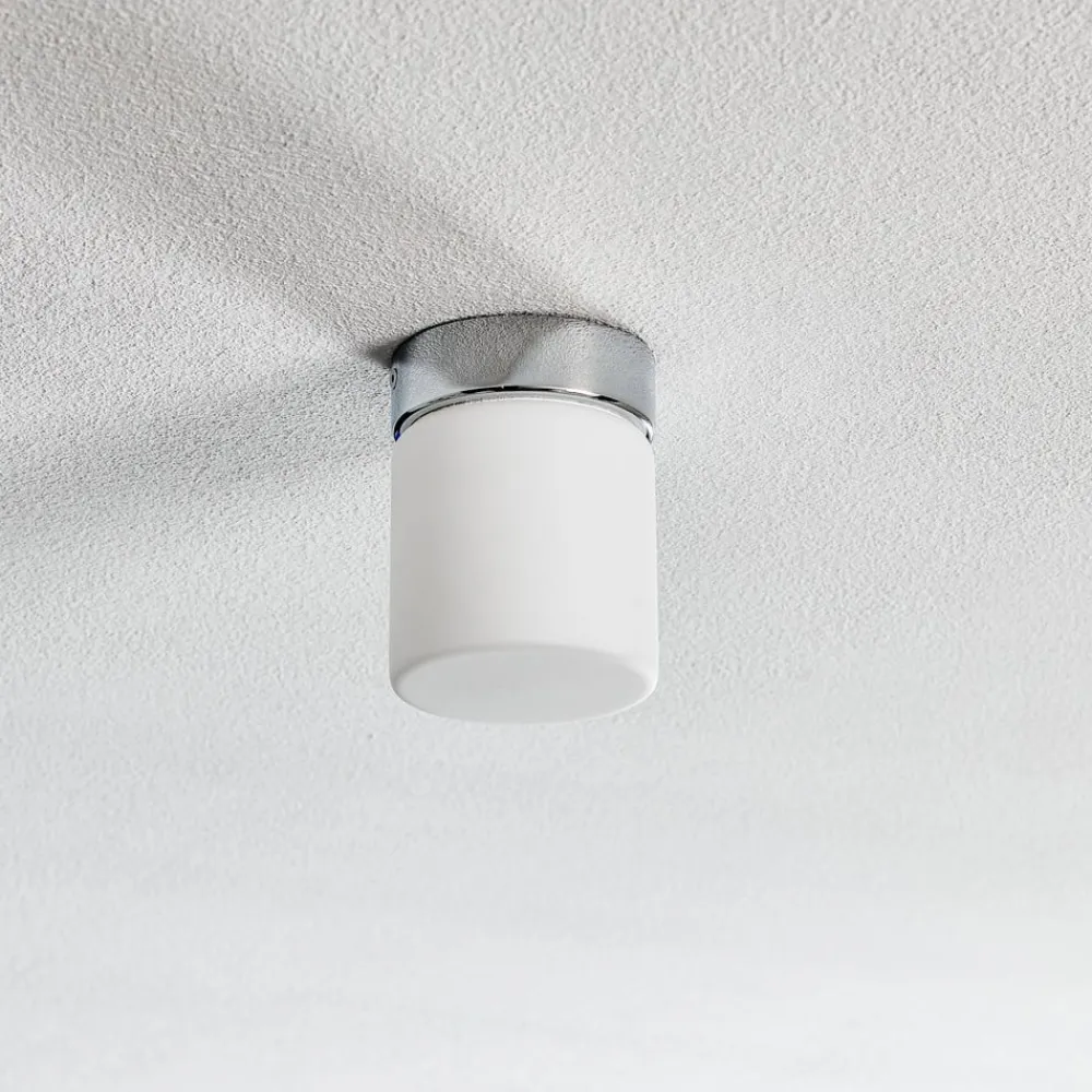 Varmt hvidt lysende LED-loftlampe Keto i cylindrisk designMed den cylindrisk formede LED-loftlampe Keto kan badeværelset ikke kun blive vidunderligt behageligt oplyst, men også stilfuldt udvidet, fordi loftslampen med sin ædle opalglasskærm er en særlig attraktiv lyskilde. Lyset genereres inde i den opale glasskærm af en varm hvid LED og sendes ud gennem skærmen til omgivelserne. Selv større badeværelser kan belyses vidunderligt med Keto, da den også kan kombineres til flere, så lysudbyttet kan øges med hvert ekstra armatur.Med beskyttelsesklasse IP44