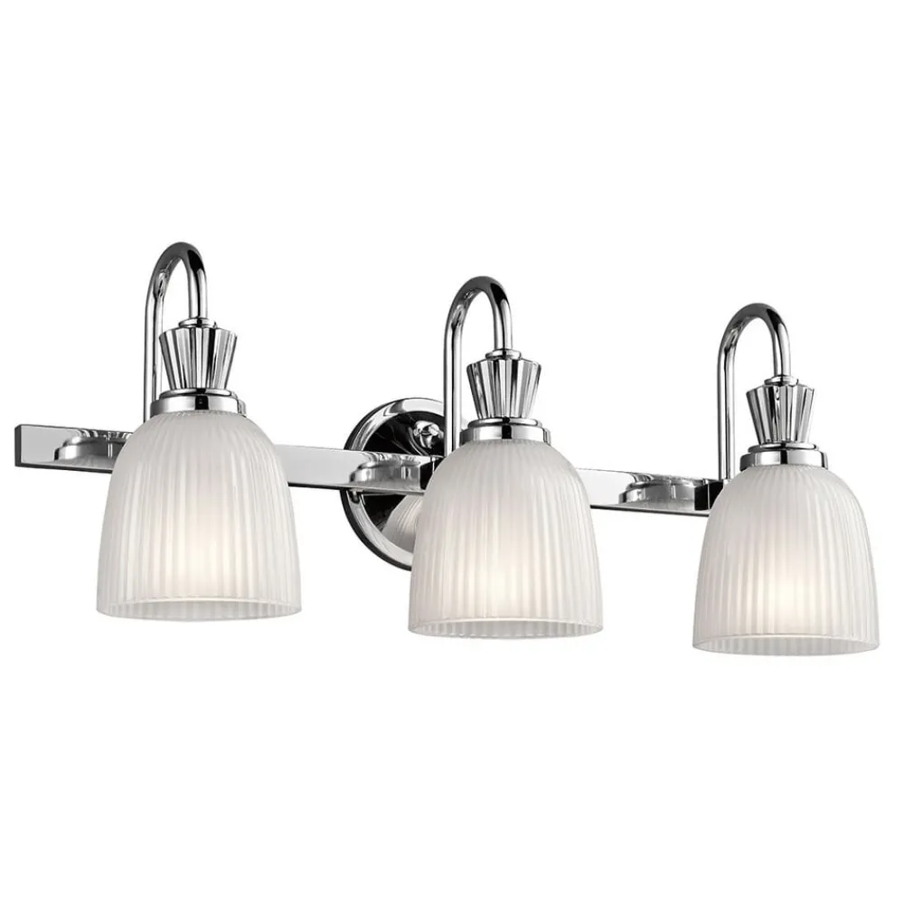 3-lampe Cora LED væglampe med et skinnende krom look til badeværelset