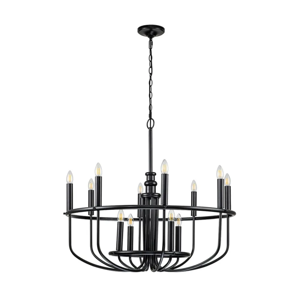Capitol Hill lysekrone, 12 lyskilder, sort