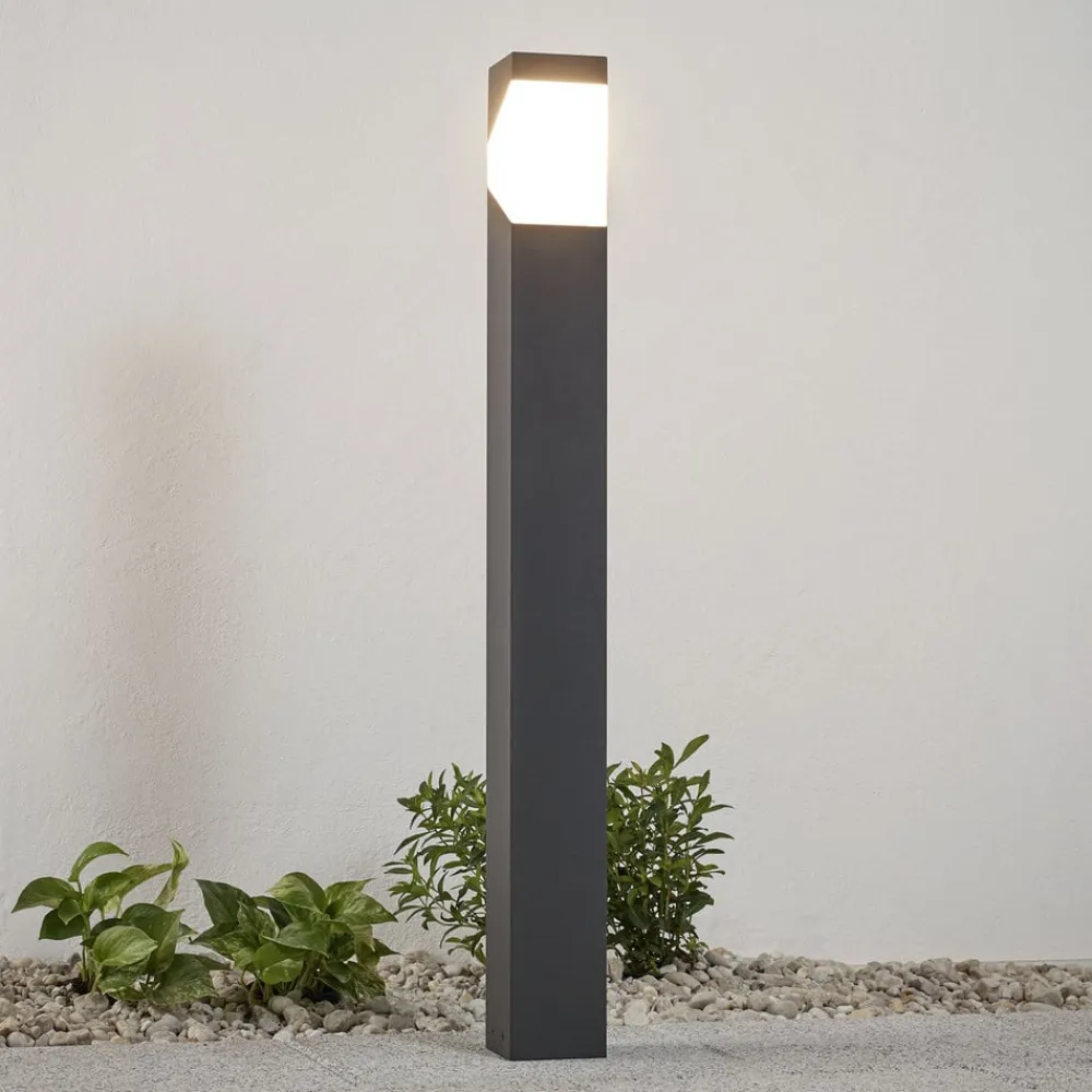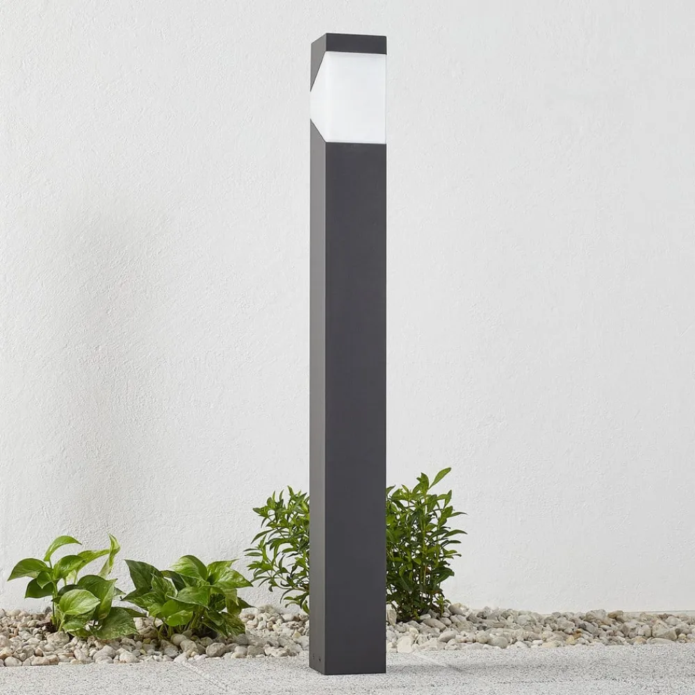 Lucande Kiran vejlampe, 100 cm, grå, metal, IP44, E27