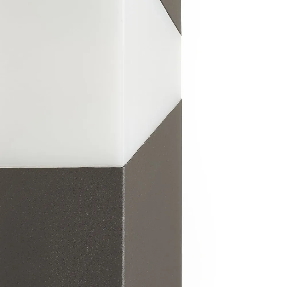Kiran vejlampe med lige linje til moderne udendørsbelysning Helt kantet i formen passer Kiran vejlampen smukt ind i omgivelserne i moderne bygningskomplekser. Med sin hvide plastskærm skaber den et smukt, blændfrit lys og viser vej for alle, der har brug for at finde vej udenfor, selv i mørke. Plastindsatsen ser ud som et trapez i siden, hvilket giver den et mere individuelt udseende. En passende pære til E27-fatningen kan vælges blandt tilbehøret.