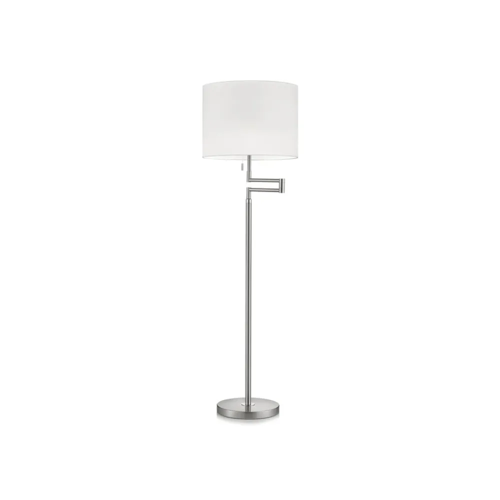 Lilo gulvlampe, mat nikkel, cylindrisk lampeskærm
