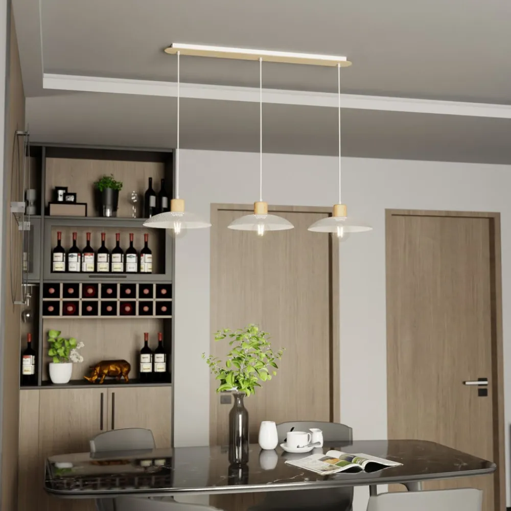 Kobe hængelampe, 3 lyskilder, stål, træ, hvid