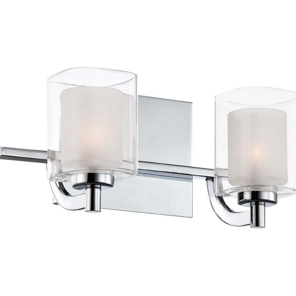 Kolt væglampe med IP44-beskyttelse, to lamper Kolt væglampe med to lamper imponerer med et enkelt design lavet af stål og glas med en elegant, poleret kromfinish. Armaturet er udstyret med to dobbeltlagede glasskærme. De indre, mindre skærme er lavet af sandblæst glas og blokerer lyset fra pærerne, mens de to større ydre skærme, der omgiver de små skærme, er lavet af klart glas, hvilket skaber et sofistikeret look og en særlig lyseffekt. IP44-beskyttelse gør armaturet til den perfekte væglampe til badeværelset.
