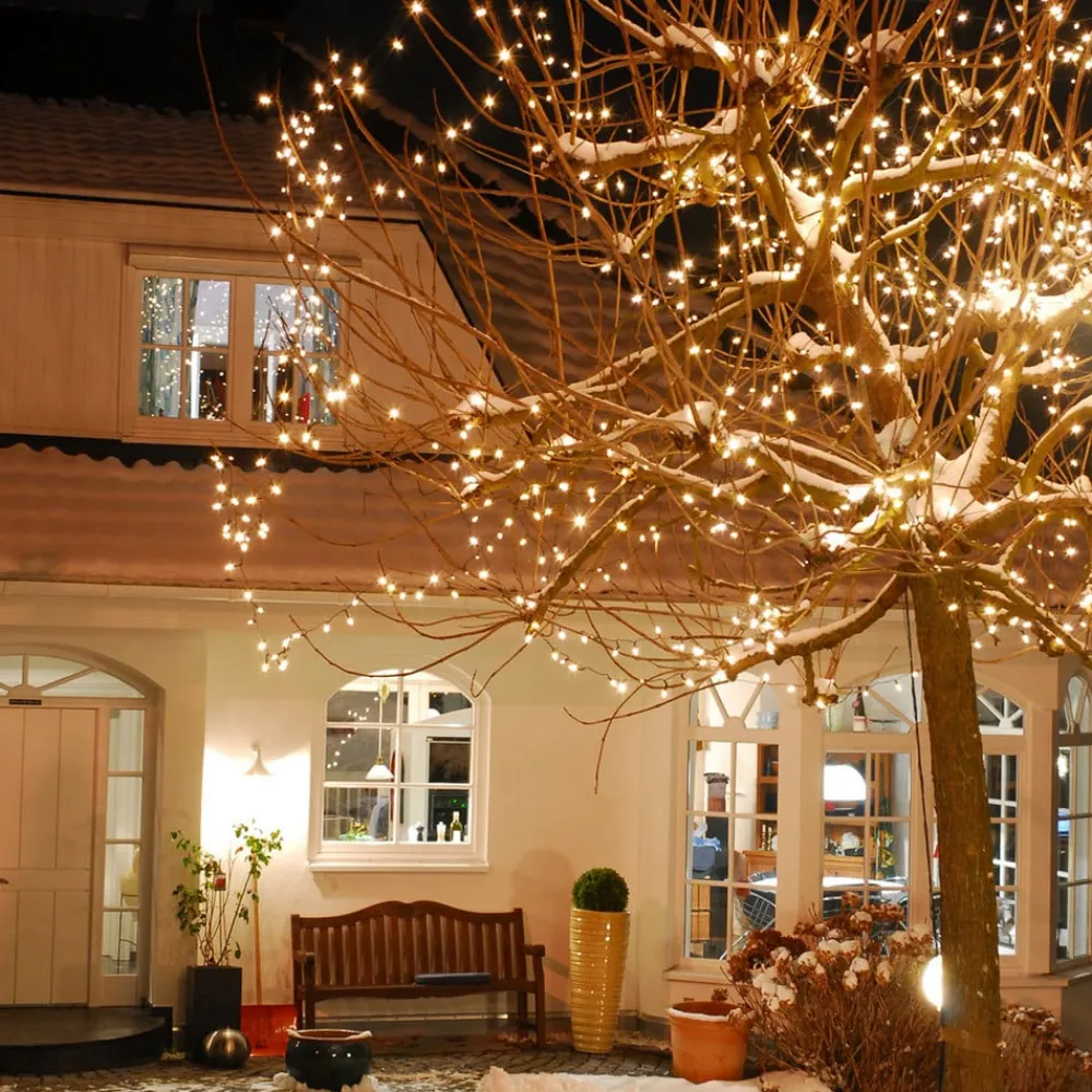 lyskæde Elias med 200 lys til udendørs brug Med lyskæden Elias med 200 LED’er, der udsender et blødt, varmt hvidt lys, kan selv større træer forsynes med stemningsfuld dekoration. Inkl. udendørs transformer – Samlet længde: 37,85 m – Forsyningskabel: 8 m – Afstand mellem lyskilderne: 15 cm – Grønt kabel
