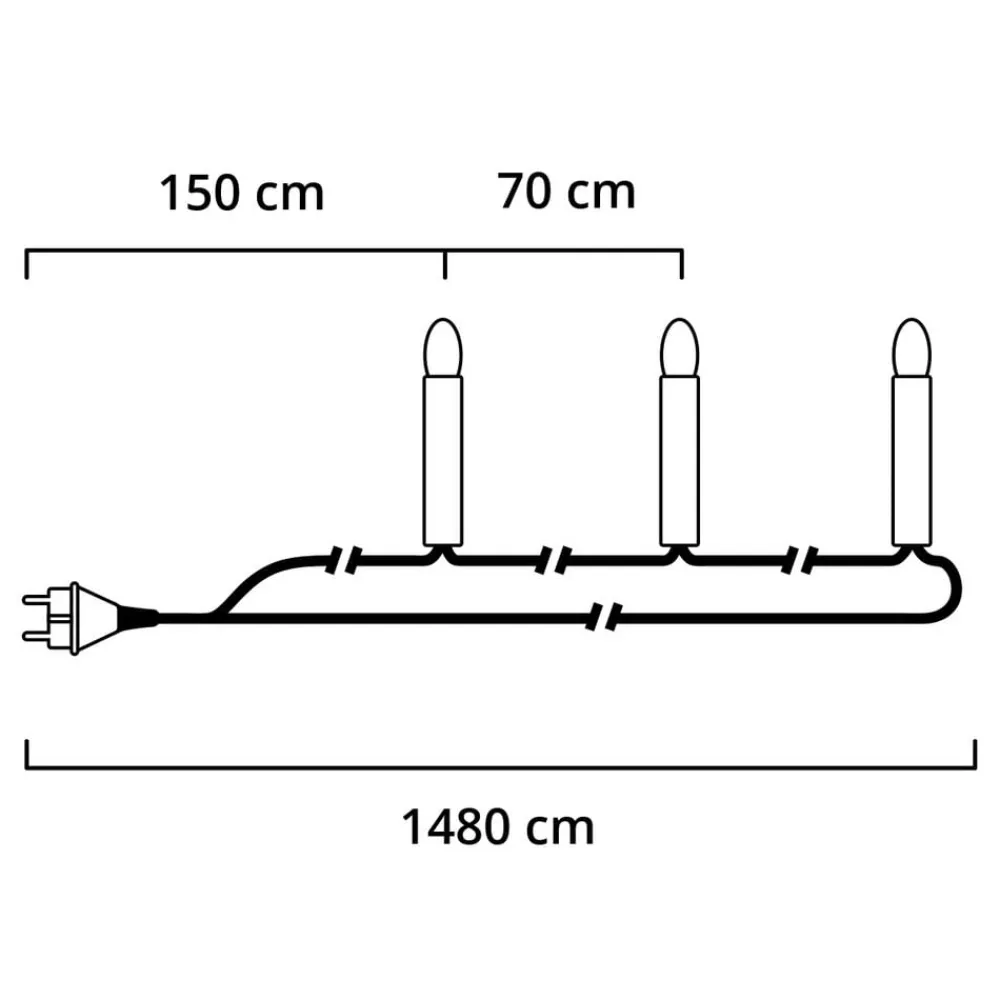 20-lys lyskæde med hvidt vokslook 14,8 m