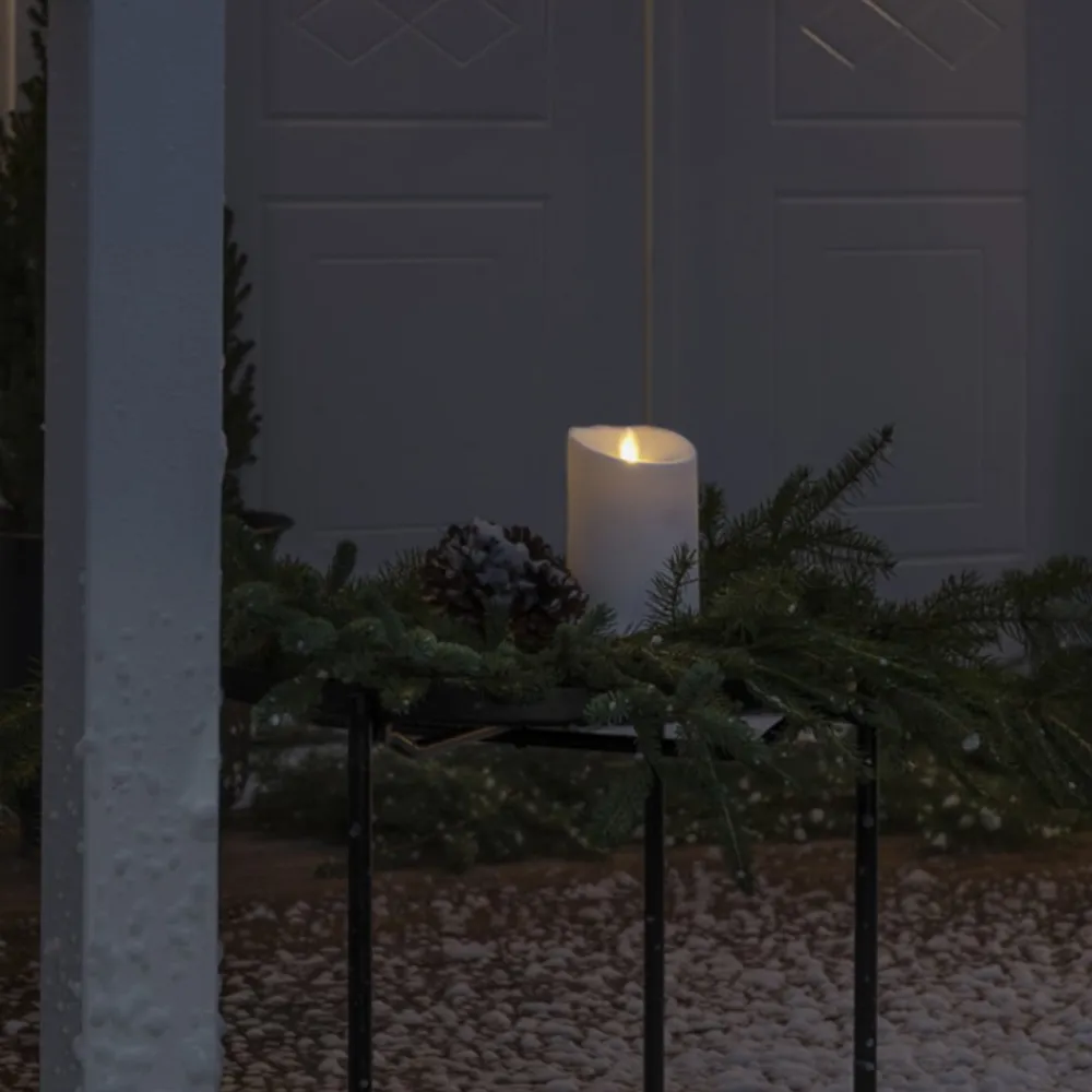 LED dekorativt stearinlys IP44 cremehvid smeltet 18,4 cm