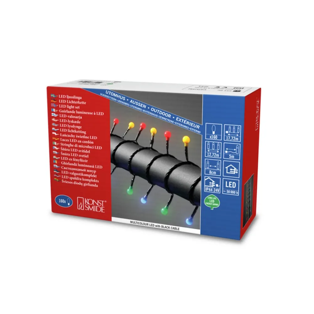 LED-lyskæde 160 lk, 12,72m udendørs brug, farverig