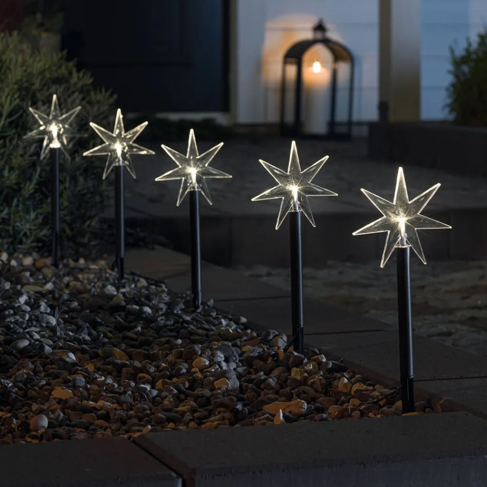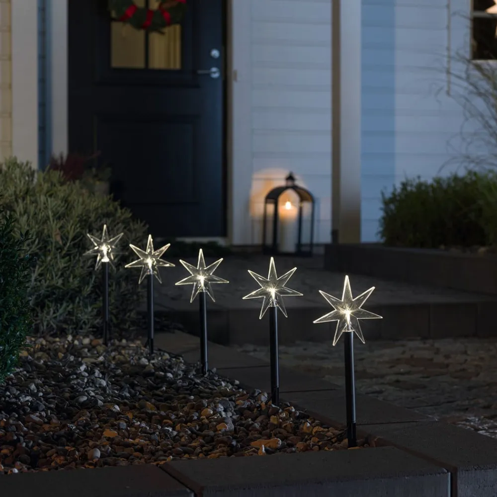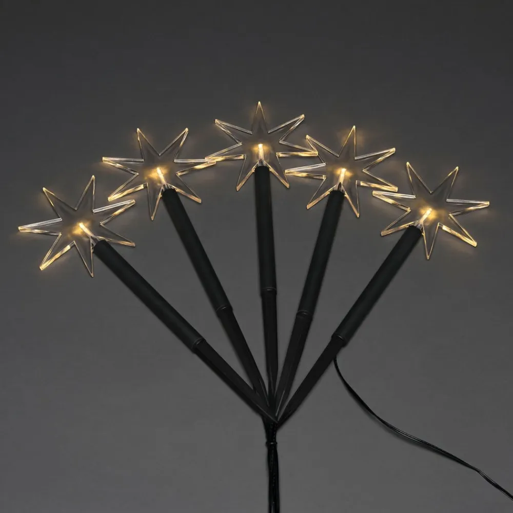 LED udendørs dekorationsstjerne, 5-lys, med jordspyd