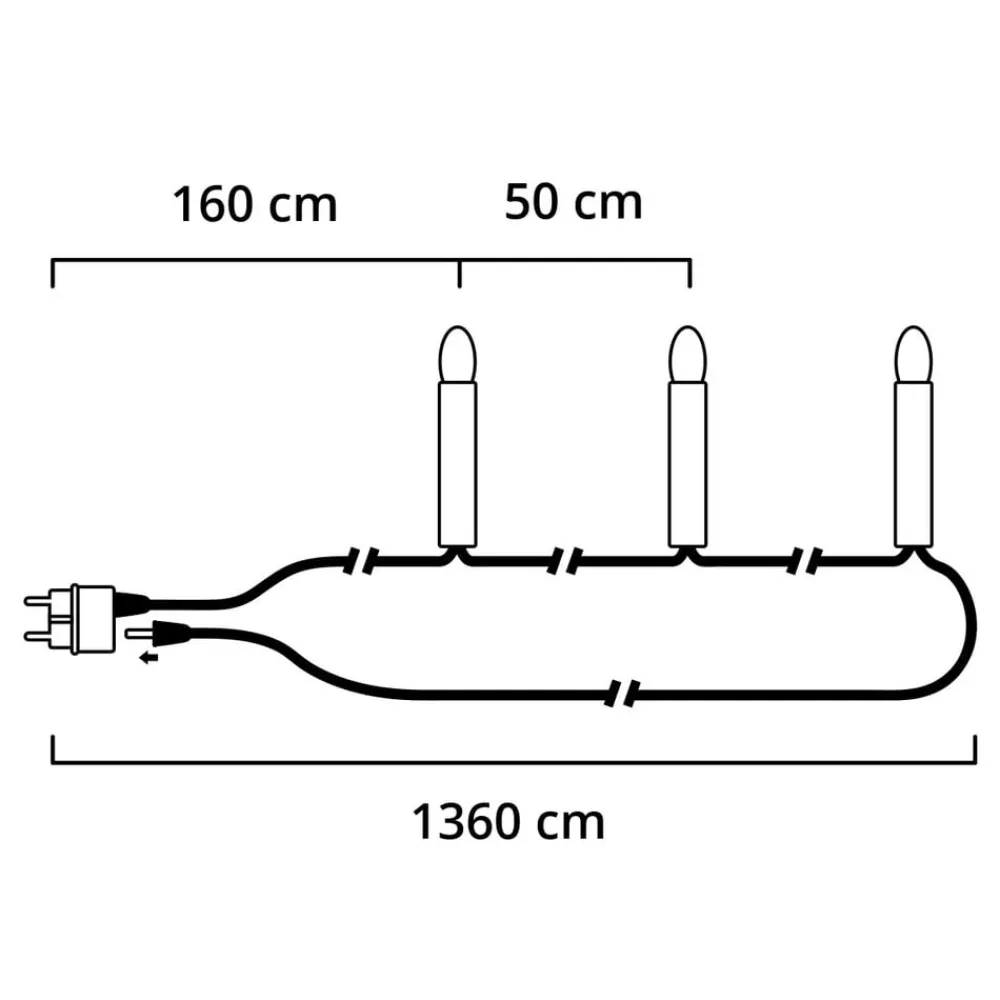 Lyskæde med delbart stik, med 25 lys