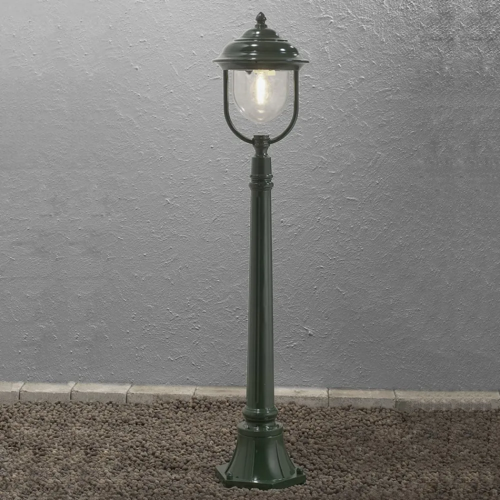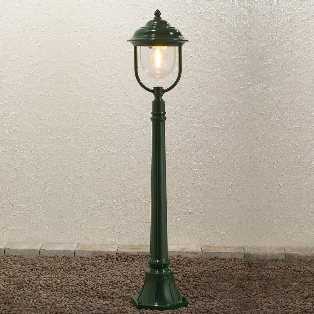 En klassisk stilampe fremstillet af aluminium. Dens klare lampeglas sikrer optimal belysning. Den flot formede skærm og dekorerne på lampen samt masten giver Parma et lidt nostalgisk look.