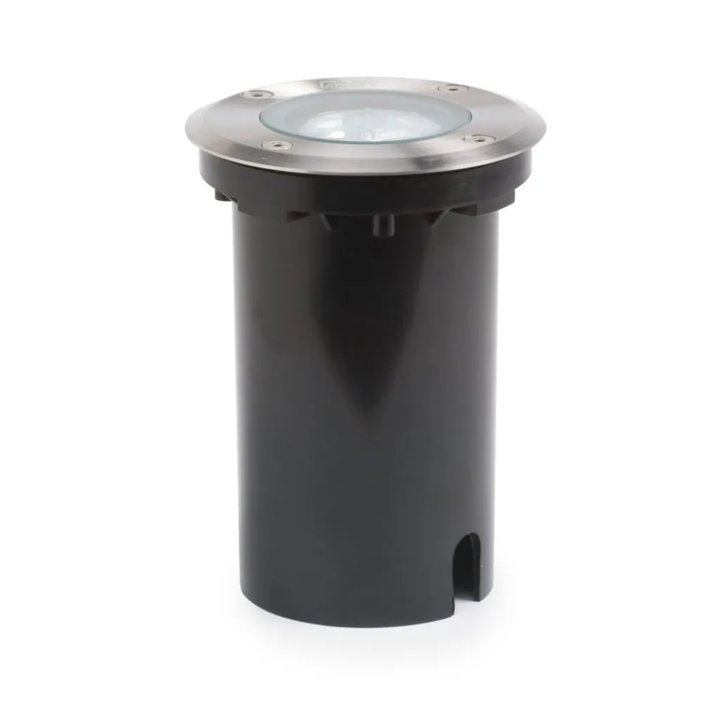 Nedgravningsspotten har en rund form og er velegnet til sikker og moderne belysning af indkørsler, gangstier og terrasser. Spotten tåler en belastning på op til 1,5 tons. Indbygningsdybden er 15 cm. Den synlige plade består af rustfrit stål og delvist satineret glas, elementet til nedgravning består af vejrbestandigt kunststof. Kapslingsklasse IP65. Inkl. kabelføring.