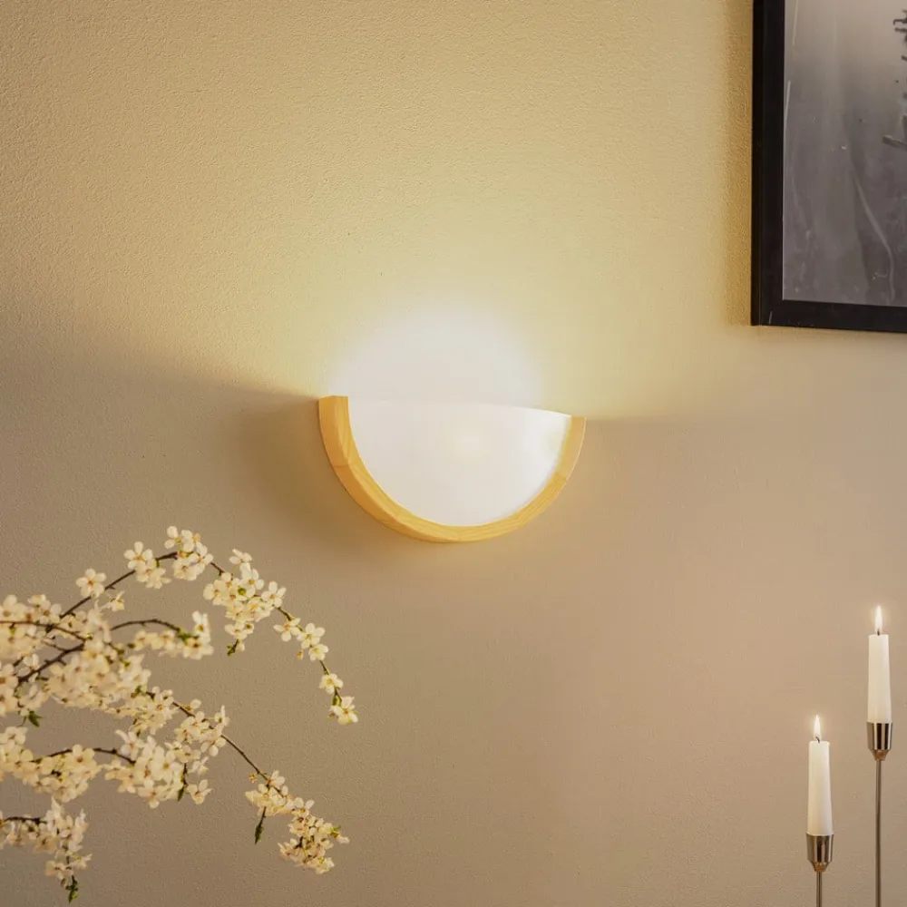 Envostar Kris væglampe overbeviser med sin naturlige æstetik og brugen af materialer af høj kvalitet som træ og glas. Den europæisk fremstillede lampe skaber en varm og indbydende atmosfære i stuer, spisestuer og entreer. Kombinationen af naturlig fyrretræ og hvid giver lampen en tidløs elegance, der passer harmonisk ind i forskellige indretningsstilarter.
