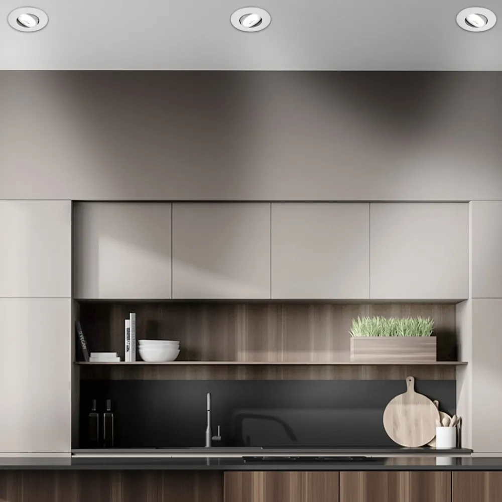 Kulana Et indbygget LED-armatursæt til opholds- og arbejdsrum LED-lyskilderne i dette moderne designede armatursæt skaber ikke kun en behagelig atmosfære, men giver også energieffektiv belysning. Med muligheden for at dreje indbygningslamperne kan du rette lyset præcis derhen, hvor der er brug for det, for at skabe et inspirerende miljø eller øge produktiviteten. Det 3-delte sæt giver en ensartet løsning til sofistikeret rumbelysning, der både er funktionel og æstetisk tiltalende. Farvetemperaturen på 4.000 Kelvin giver et klart, neutralt lys, der er ideelt til koncentreret arbejde eller klar rumopfattelse. Den moderne stil understreger også det moderne design af dit interiør.