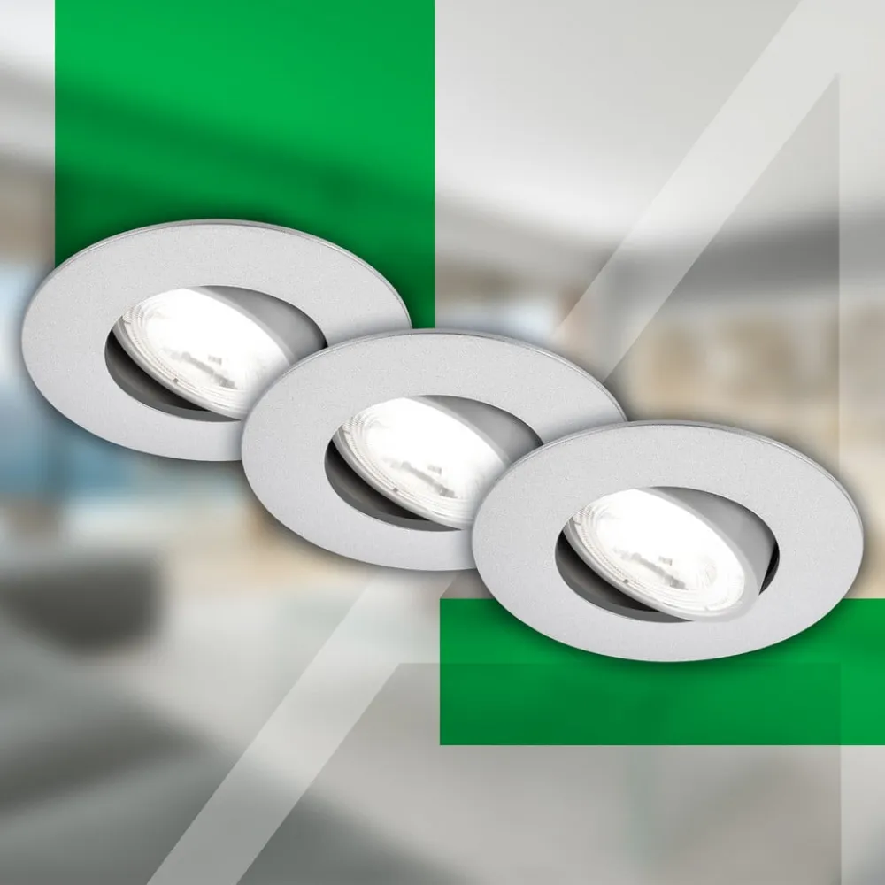 Kulana A indbygningslampe, mat krom, 4000K, sæt med 3 stk^Briloner Hot