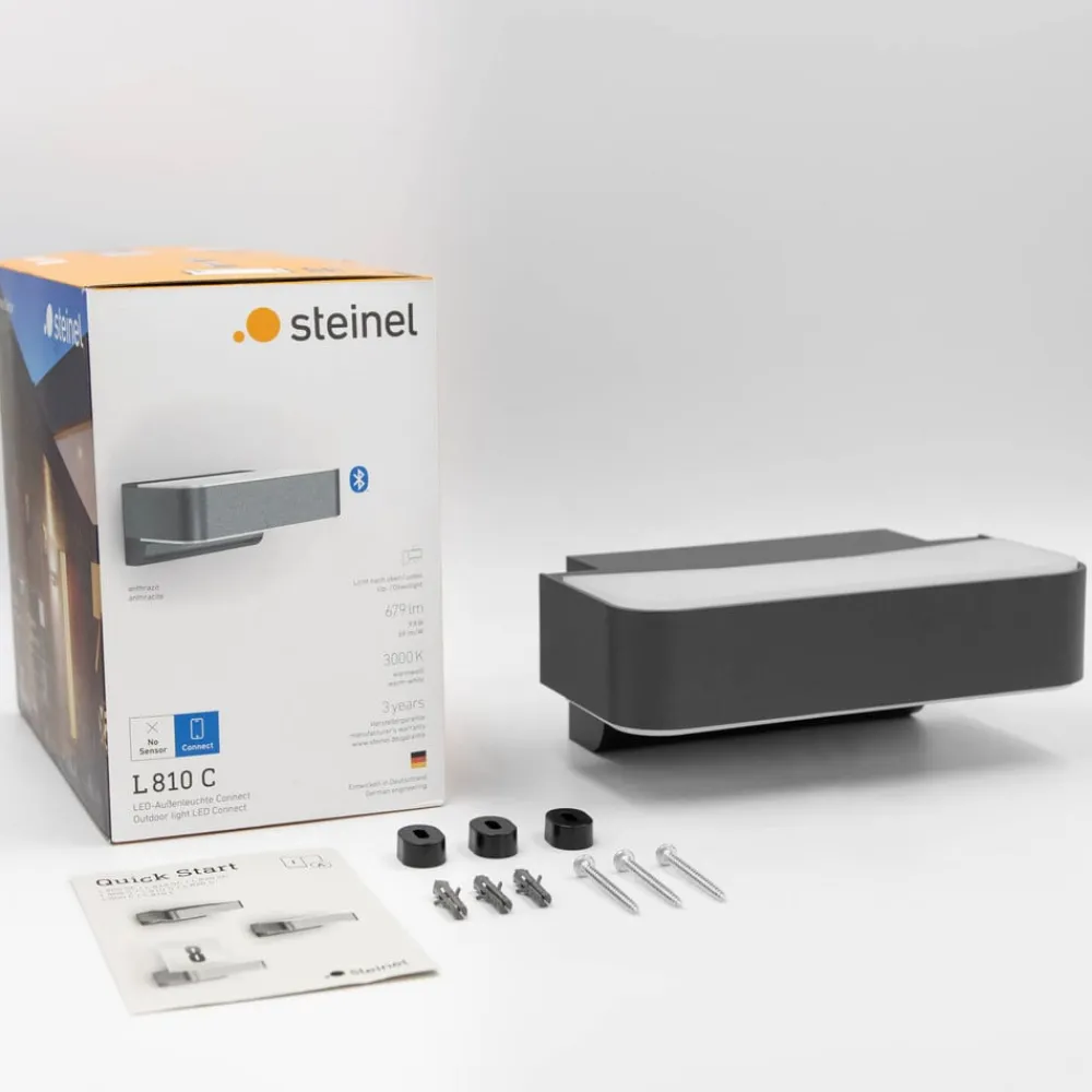 Moderne udendørs LED-væglampe L 810 C med op/ned-lys Den udendørs LED-væglampe L 810 C i høj kvalitet giver et effektivt lys opad og nedad. Den er ideel til udendørs brug i indgangspartier eller på husfacader. Denne udendørslampe kombinerer et moderne look, slankt design og førsteklasses belysning – Konfiguration og smart styring udelukkende med Steinel Connect-appen – Kobling med smartphone/tablet via Bluetooth – Monteringshøjde maks. 2,5 m