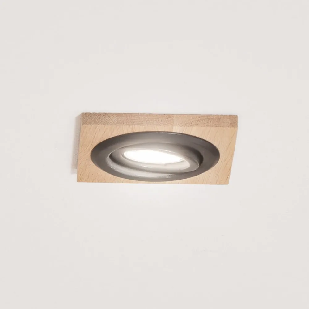 Kantet forsænket loftlampe Tobby i egetræ med drejelig GU10-fatning