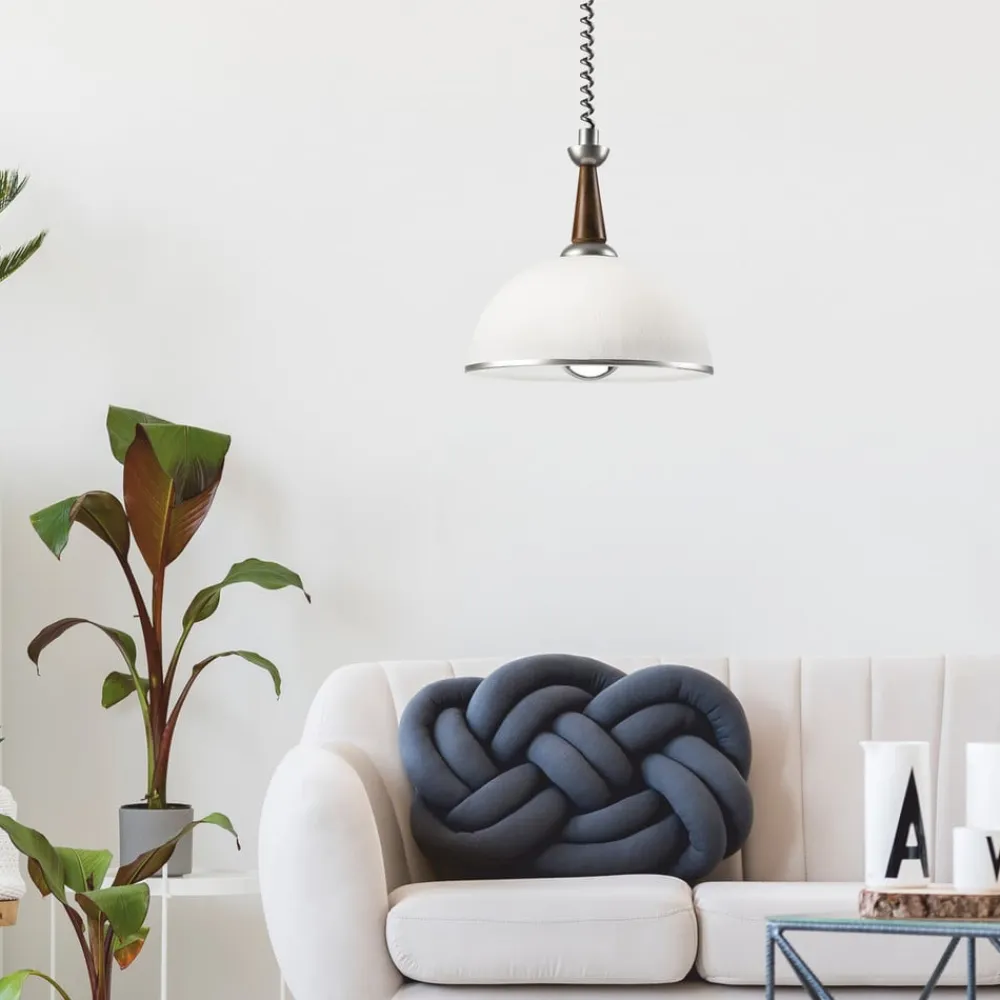 Hængelampen Ilsa forener stilfuld elegance med funktionel fleksibilitet og er et highlight i ethvert rum. Lampen er fremstillet af en harmonisk kombination af glas, plast og metal og passer perfekt ind i et landligt eller rustikt miljø. Farven i hvid og sølv giver lampen en tidløs æstetik, der sætter accenter i både køkkenet, stuen og spisestuen.