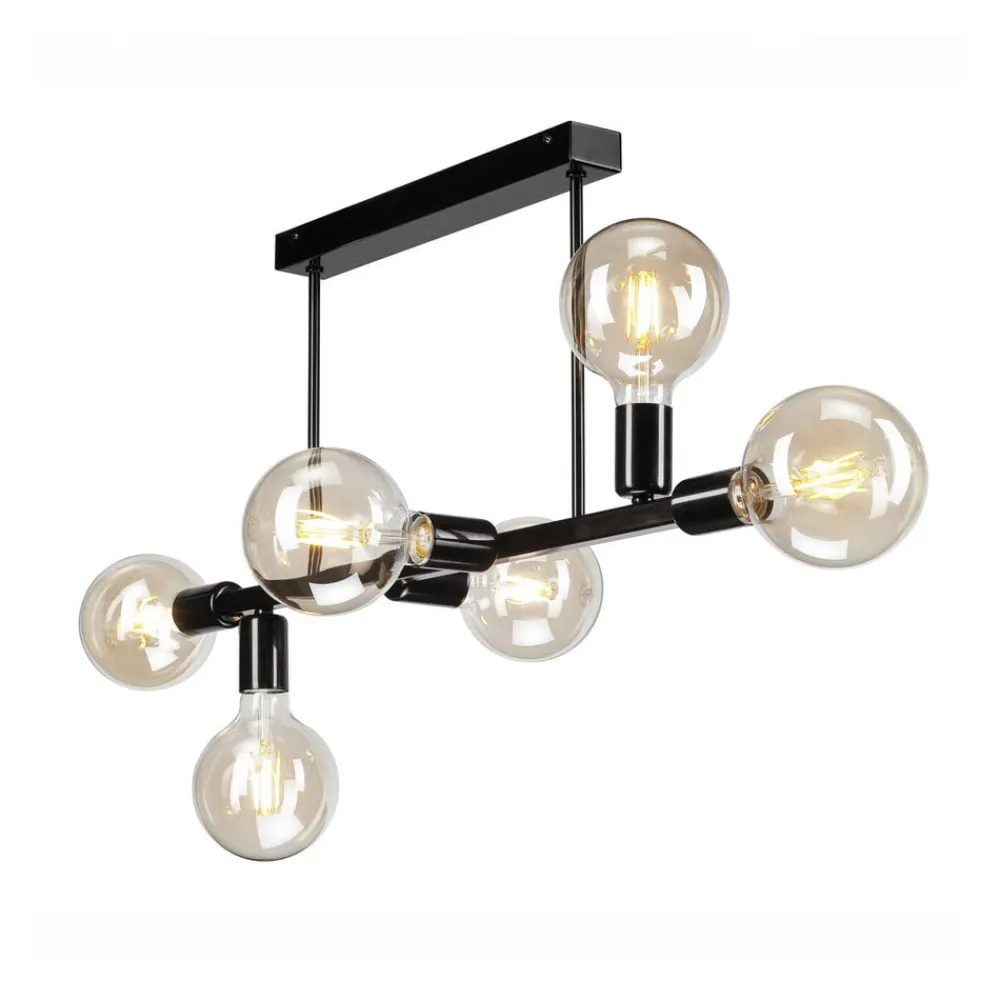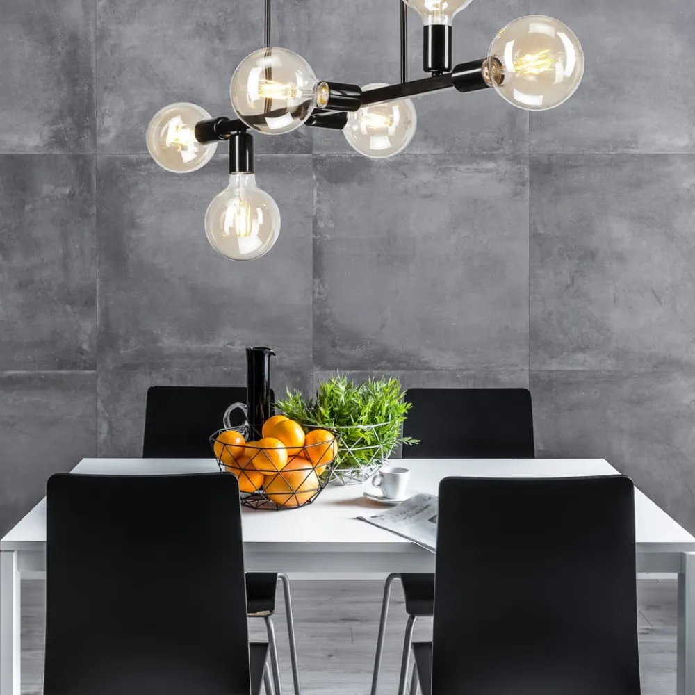 Loftlampen Eliza med 6 lyskilder i elegant sort kombinerer moderne design med funktionel alsidighed. Lampen er fremstillet af højkvalitetsstål og passer perfekt ind i forskellige rumkoncepter, hvad enten det er i stuen, køkkenet eller spisestuen. Muligheden for at dæmpe lampen via en ekstern dæmper gør det muligt at tilpasse lysintensiteten individuelt og dermed skabe den ønskede atmosfære.
