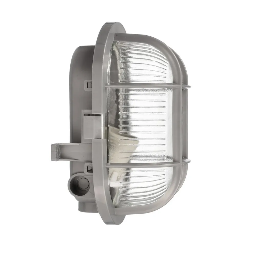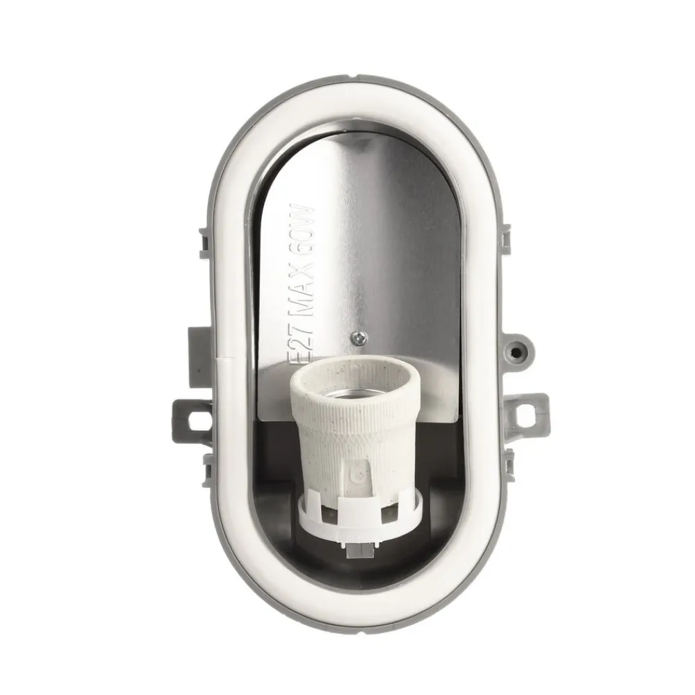 Sotano Retro oval væglampe til vådrum Sotano Retro væglampen er designet som en klassisk oval skotlampe. Strukturen af polypropylenplast er robust (IK06) og også beskyttet mod stænkvand (IP44), hvilket gør påbygningslampen ideel til fugtige rum, kældre, arbejdsområder og endda udendørs. Kabelindføring er mulig fra forskellige sider, og monteringen er meget fleksibel takket være flere fastgørelsespunkter.
