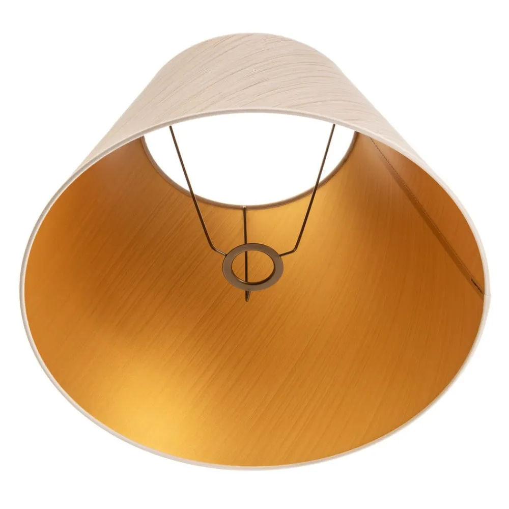 Sofia lampeskærm imponerer med sin elegante kombination af hvidt og guldstribet stof, der giver ethvert rum et luksuriøst præg. Denne lampeskærm er fremstillet af materialer af høj kvalitet og bringer ikke kun lys, men også stil og raffinement til ethvert miljø. Den omhyggelige forarbejdning og det tiltalende design gør den til et fremragende element i indretningen.
