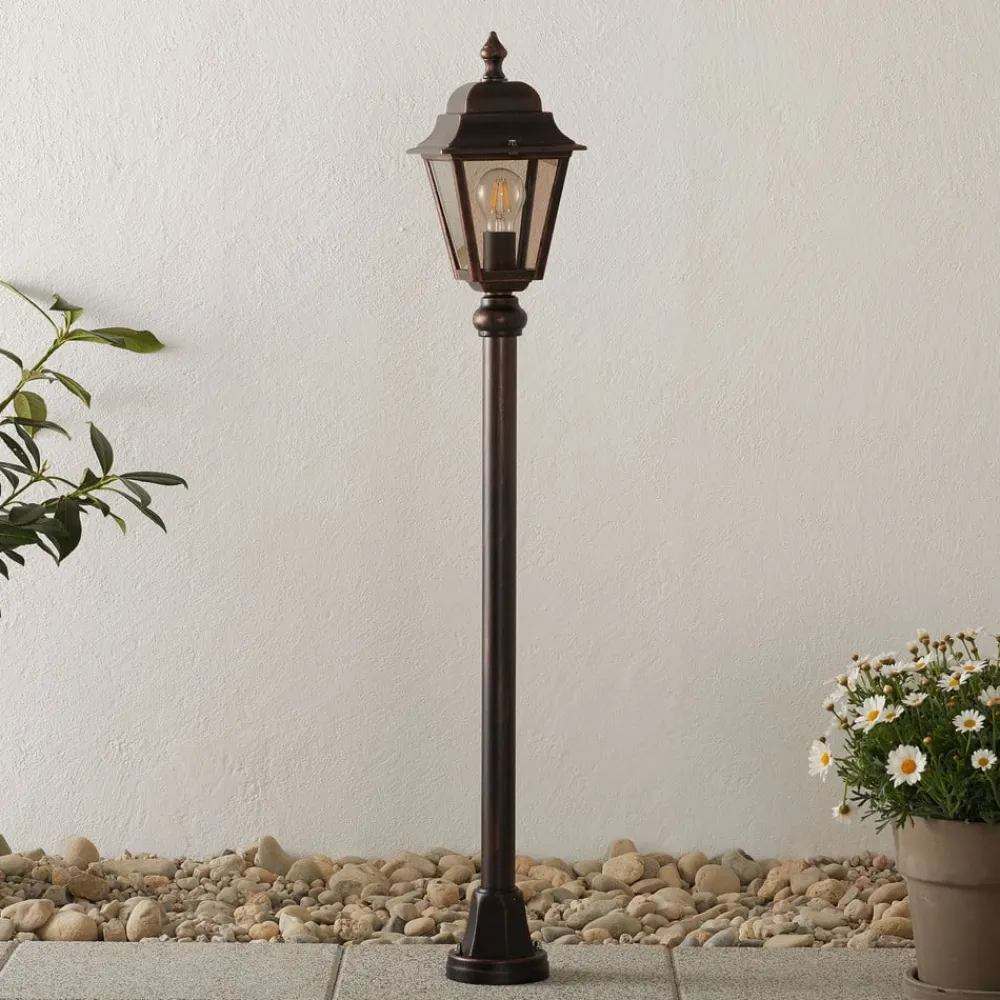 Toulouse – en stibelysning med antik charme Antikke lanterner var inspirationen til designet af den smukke Toulouse-stibelysning. Armaturets base, fod og lanterne er lavet af aluminium og pulverlakeret i et antikt kobberlook. Takket være dette og IP43-beskyttelsesgraden er den optimalt beskyttet mod vejrliget. Takket være det klare glas, som kun er let tonet, oplyser lyskilden – LED er også muligt – store områder.