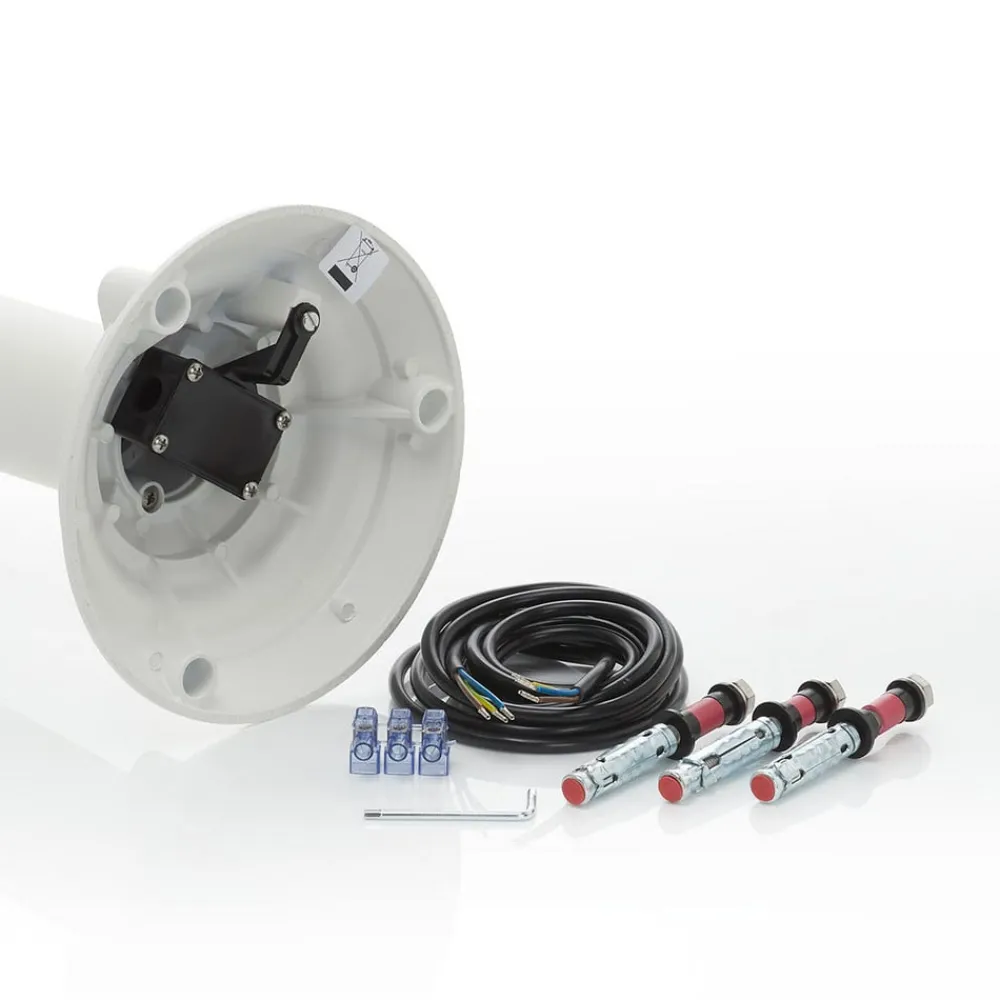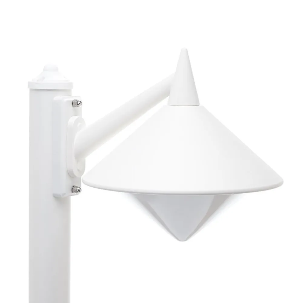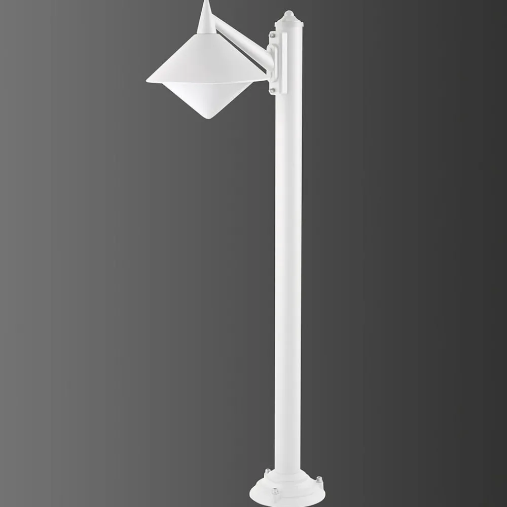 Hvid Liara-stilampe – beskyttet mod saltvandskorrosion Havvandsbestandighed er den vigtigste egenskab, som armaturer, der skal bruges på et sted nær en sø, skal have. Et kriterium, som Liara-stilampen af trykstøbt aluminium (forkromet) helt klart opfylder. Det er selvfølgelig også en fordel, at den kan kombineres med talrige stilvariationer takket være dens moderne look og neutrale hvide farve. Og ikke at forglemme: Med sin store diffusor af plast (polykarbonat) udsender den klart lys over et stort område, hvilket giver en ideel stibelysning. Udstyret med IP43-beskyttelse.