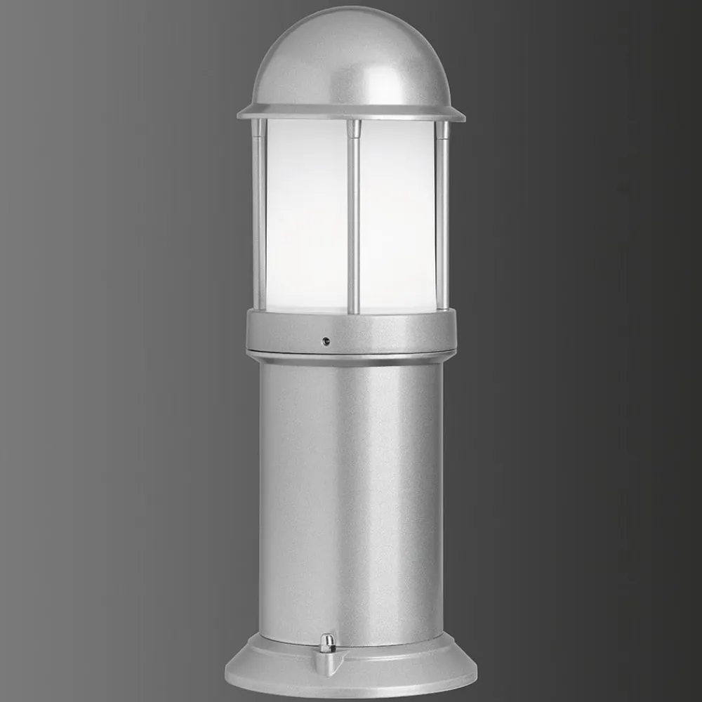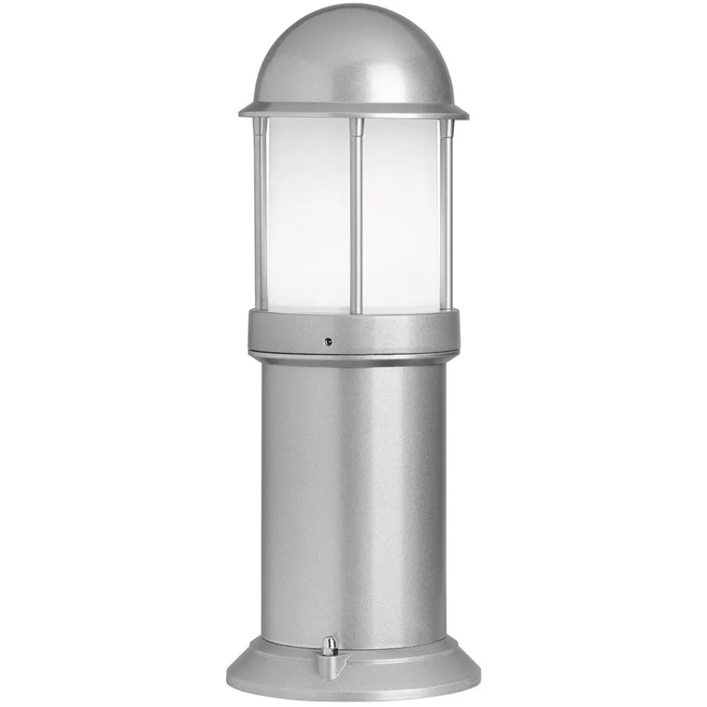 45 cm høj Marco sokkellampe Den afrundede Marco sokkellampe af trykstøbt aluminium giver udendørsområdet et let maritimt præg og sikrer – når den monteres på vægge eller sokler – en behagelig lysstyrke og samtidig sikkerhed på ejendommen. Den hvide polykarbonatafskærmning lader lyset skinne jævnt hele vejen rundt uden at blænde. Den kapslingsgraderede sokkellampe er velegnet til brug med LED-pærer og sparepærer.