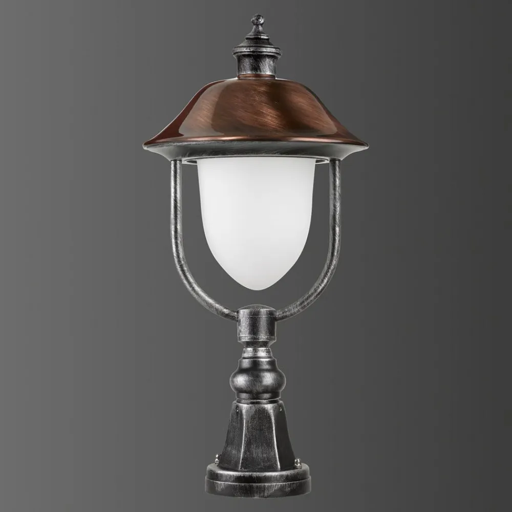 Optimal afgrænsningsbelysning: 1157 sokkellampe med antik charme Det antikke design på 1157 sokkellampen afspejles ikke kun i dens form, men også i dens farveskema. Det trykstøbte aluminiumshus har en sort metallisk finish og fremhæves på imponerende vis af det lys, der udsendes fra det opale lampeskærm. Glassets æstetiske form er et andet plus ved sokkellampen 1157, som giver en passende baggrundsbelysning på enhver ejendom.