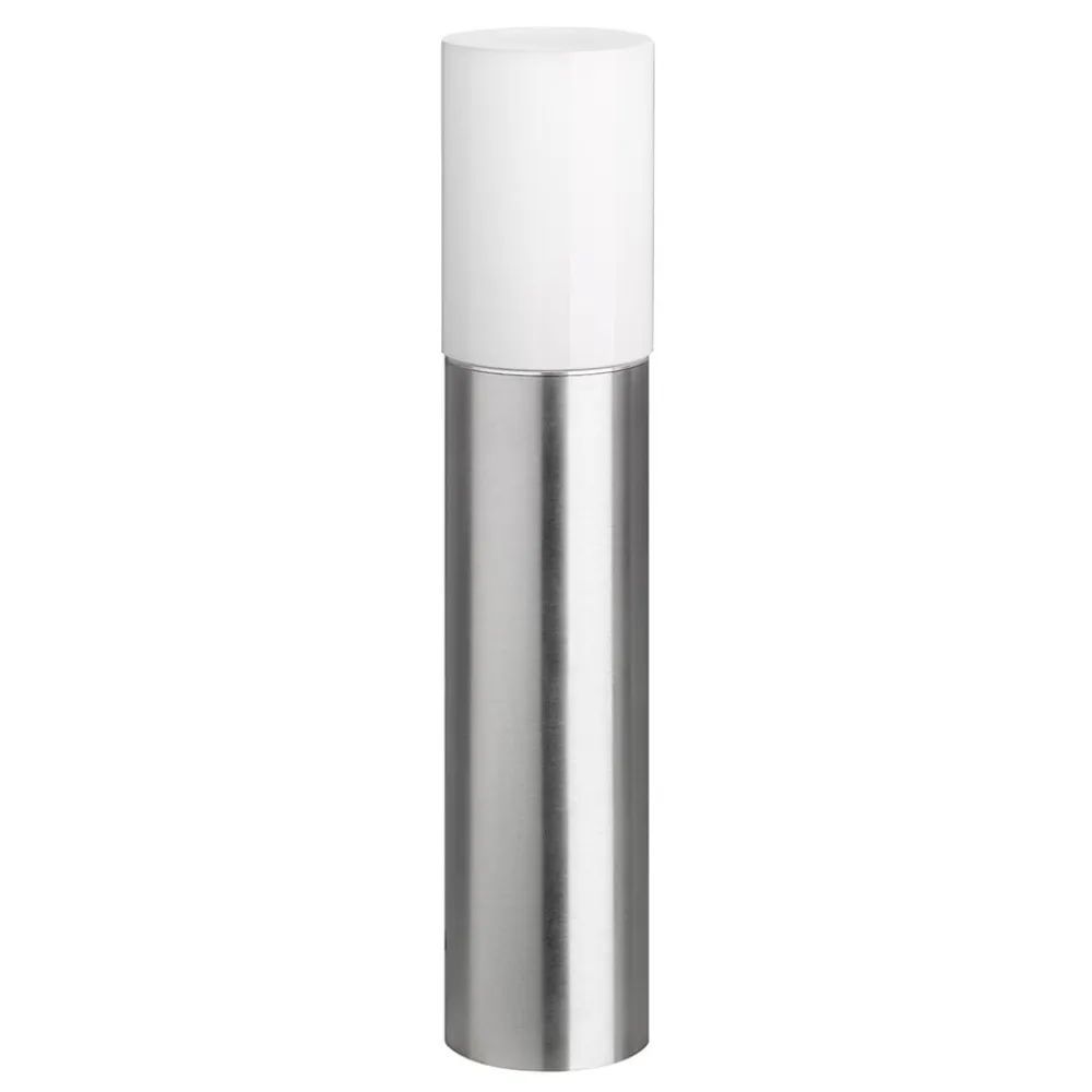 Foden i rustfrit stål af høj kvalitet har et enkelt, cylindrisk design. Dermed kommer sokkelampen 5100’s funktion i centrum. Med en pære på op til 100 watt (medfølger ikke) kan der opnås en kraftig og effektiv belysning til indkørslen, gangstien eller haven. Den gevindskårne opalglasskærm sikrer et jævnt og blændfrit lys.