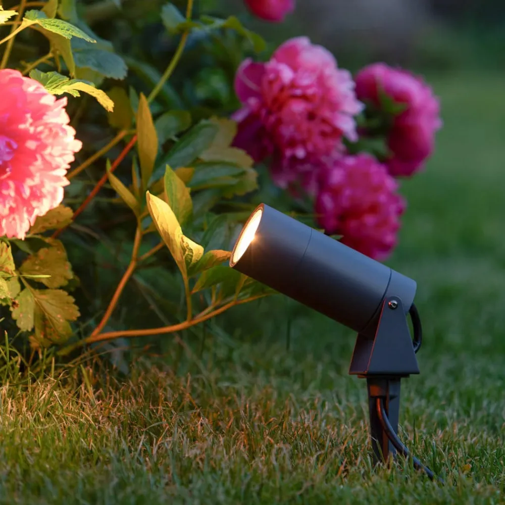 LED-spot med jordspyd med justerbart lysudbytte LED-spot med jordspyd 5131 er udstyret med et 3 m langt tilslutningskabel og et Schuko-stik. Ved hjælp af jordspyddet kan lyset placeres hvor som helst i jorden, langs stier, i blomsterbede osv. Lysudbyttet fra denne lampe med jordspyd kan varieres.