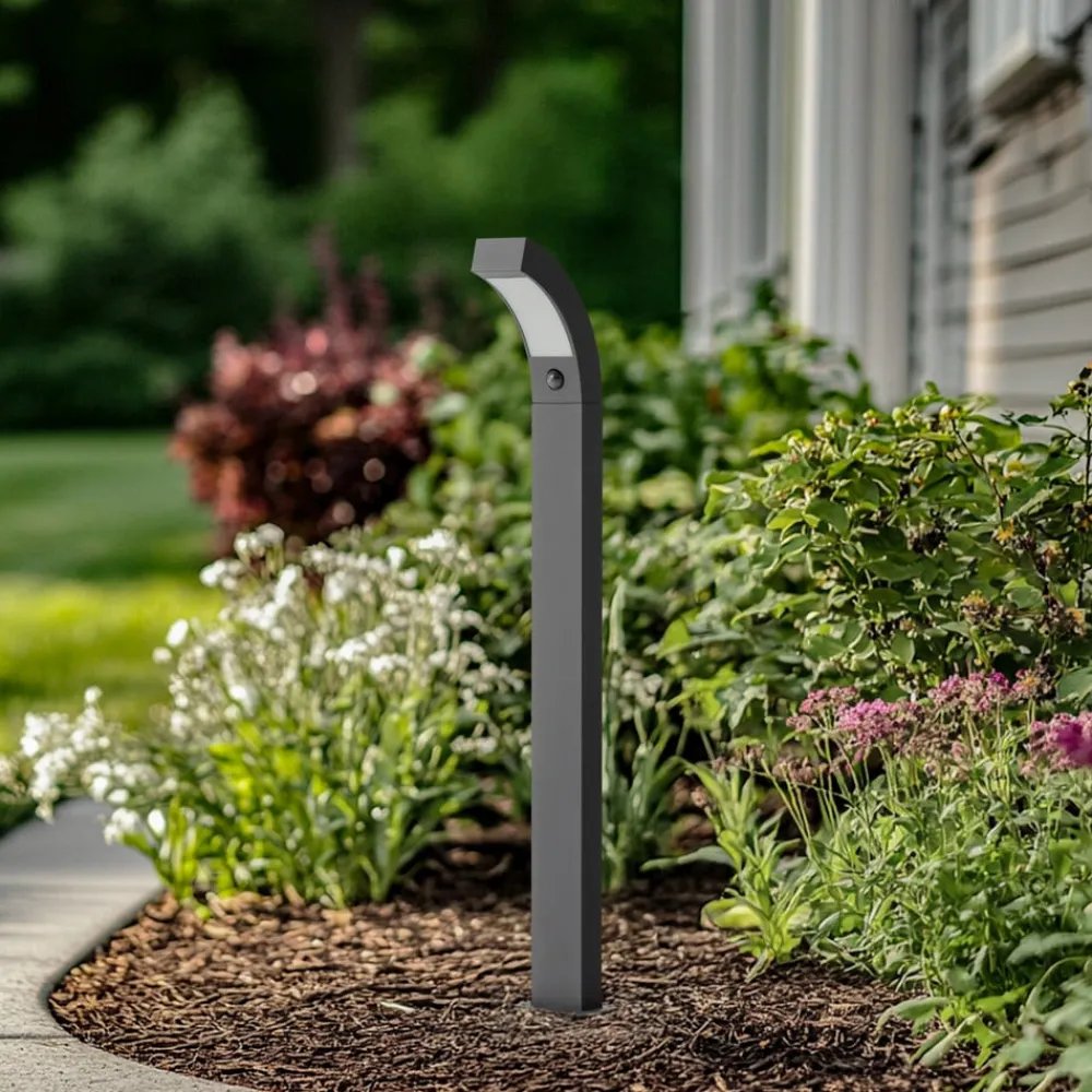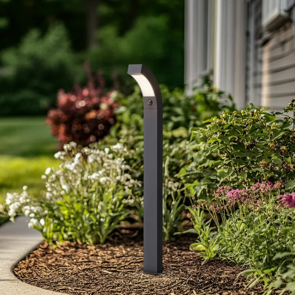 Lennik LED-gadelampe i aluminium med integreret bevægelsessensor Denne LED-gadelampe er designet til udendørs brug og har en ekstra bevægelsessensor indbygget i lampen. Den gør det muligt for lyset at tænde, når der er brug for det. Det betyder, at den begynder at lyse, når en person nærmer sig, som helt sikkert vil være glad for at kunne orientere sig bedre i mørket. Tekniske data for bevægelsessensoren: – Rækkevidde op til 9 meter – Registreringsvinkel 120° – Lysets varighed kan justeres fra 5 sekunder til 8 minutter