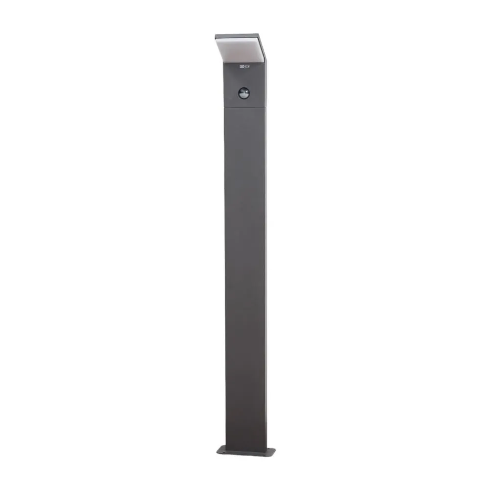 Moderne designet Nevio LED-projektorlampe med bevægelsessensor Den integrerede bevægelsessensor øger funktionaliteten af denne LED-vejlampe til udendørs brug. Nevio LED-vejlampen vil helt sikkert finde en passende plads ved siden af moderne bygninger, og det fantastiske er, at den bruger meget lidt energi, hvilket sikres ved brug af LED’er. Lampehovedet er let skråtstillet, så lyset hovedsageligt udsendes mod gulvet. Tilstedeværelsesdetektoren registrerer bevægelse i en vinkel på op til 120°, har en maksimal rækkevidde på 9 meter og kan indstilles til at lyse i mindst 5 sekunder og højst 8 minutter (efter at bevægelsen er registreret).