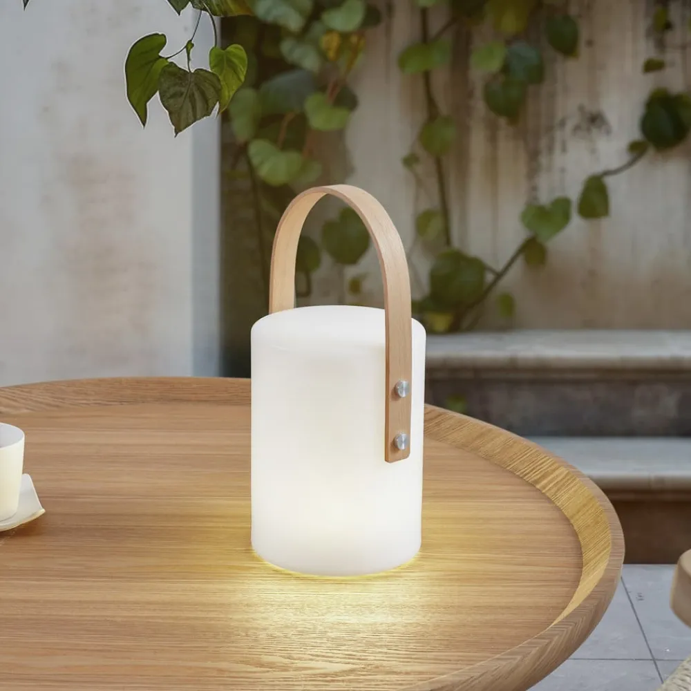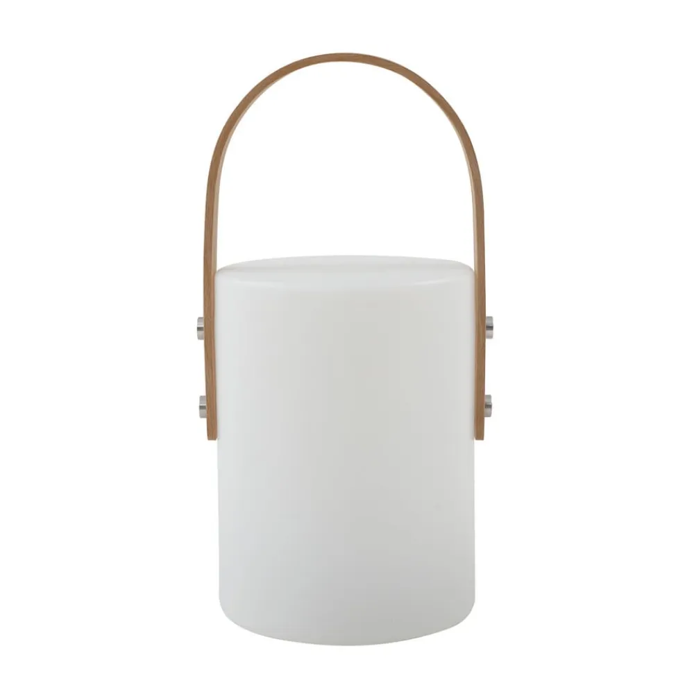 Med justerbar lysfarve – den genopladelige Juria LED-bordlampe Den moderne genopladelige Juria LED-bordlampe har et enkelt hvidt design. Lampekroppen er cylindrisk og prydes af et brunt træhåndtag, der fungerer som bærehåndtag. Lysfarven kan justeres ved hjælp af en kontakt på bordlampen, og der er to muligheder. Juria er også udstyret med et genopladeligt batteri, hvilket gør den absolut fleksibel at bruge og ideelt udstyret til udendørs brug takket være dens IP44-klassificering – inkl. USB-C-ladekabel – justerbar lysfarve – 3.000 K eller 6.500 K – batterilevetid 4 timer – opladningstid 8 timer