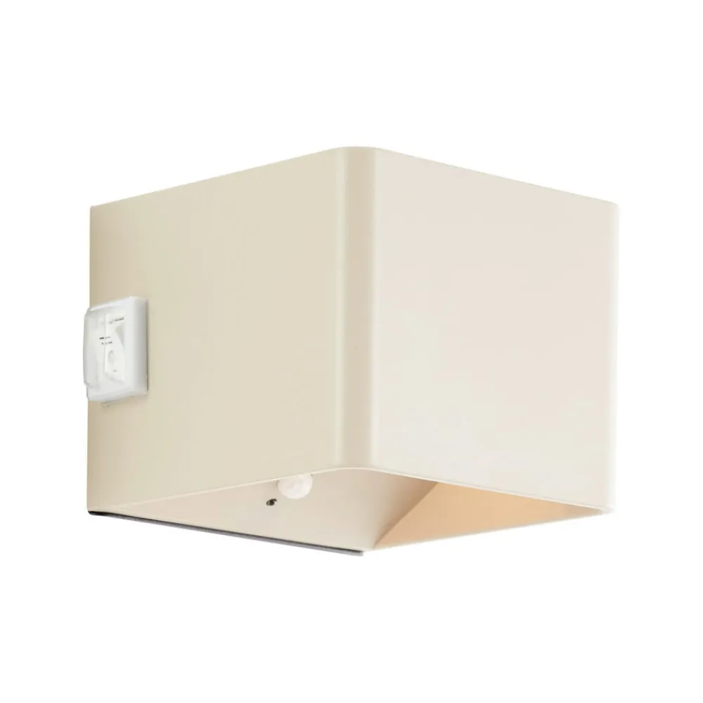 LED genopladelig udendørs væglampe Iseo, beige, bredde 10 cm, sensor