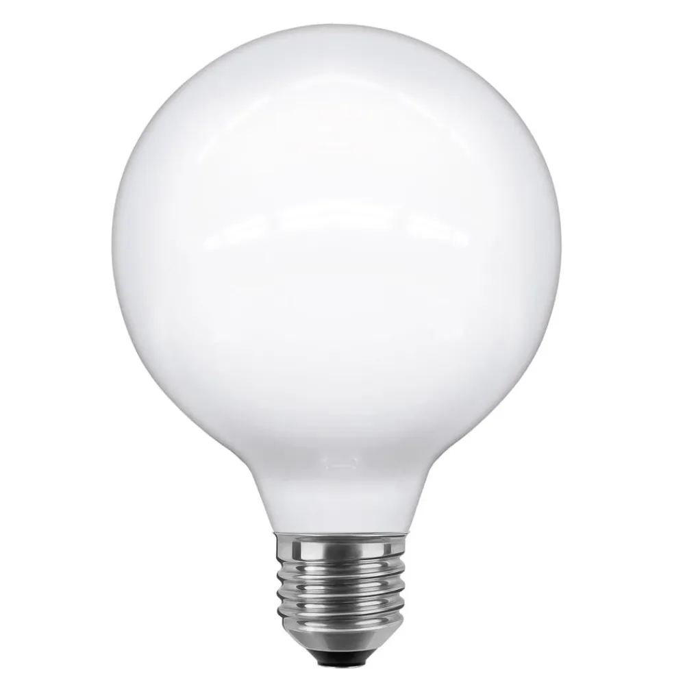 Globe lamper af denne størrelse er altid i centrum – det samme gælder LED lampen Globe G150 i opalhvid udgave til E27 fatninger. Den udsender varmt hvidt lys over et stort område og hele vejen rundt. På grund af det opalhvide glas er lyset let diffust og blændfrit, hvilket skaber en behagelig atmosfære. For mere individuelle ønsker kan lysstyrken også dæmpes eksternt.