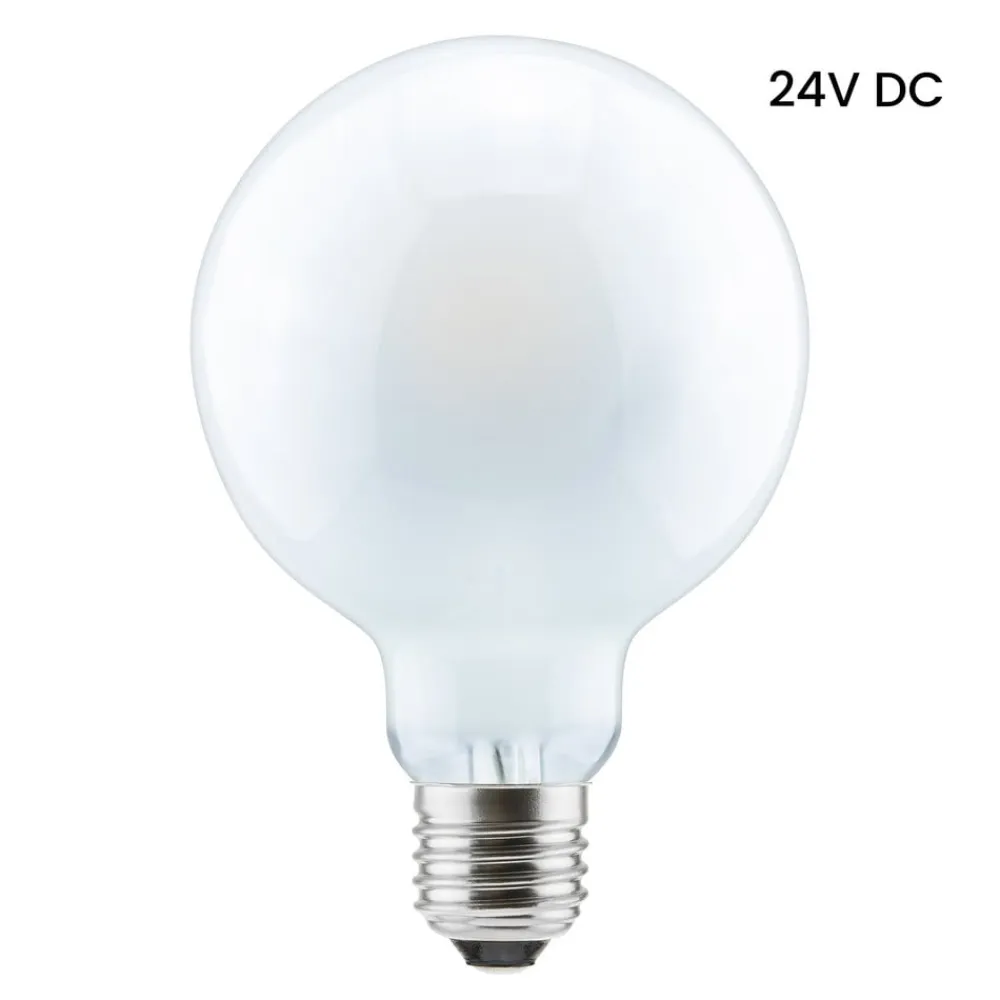 LED-globepære E27 3W 2.700K med matteret glas til 24V netspænding Denne LED-globepære fra Segulas Nautic Line er udviklet til direkte brug i en 24V strømforsyning om bord, som man f.eks. finder i autocampere, campingvogne eller på husbåde. Mens der kræves en omformer ved brug af konventionelle pærer, kan denne lampe bruges direkte. Den spotlighter en varmhvid lysfarve og kan dæmpes. Pæren er udstyret med ambient dimming, en funktion, der sikrer en faldende farvetemperatur under dæmpningsprocessen (2.700 K – 2.000 K).