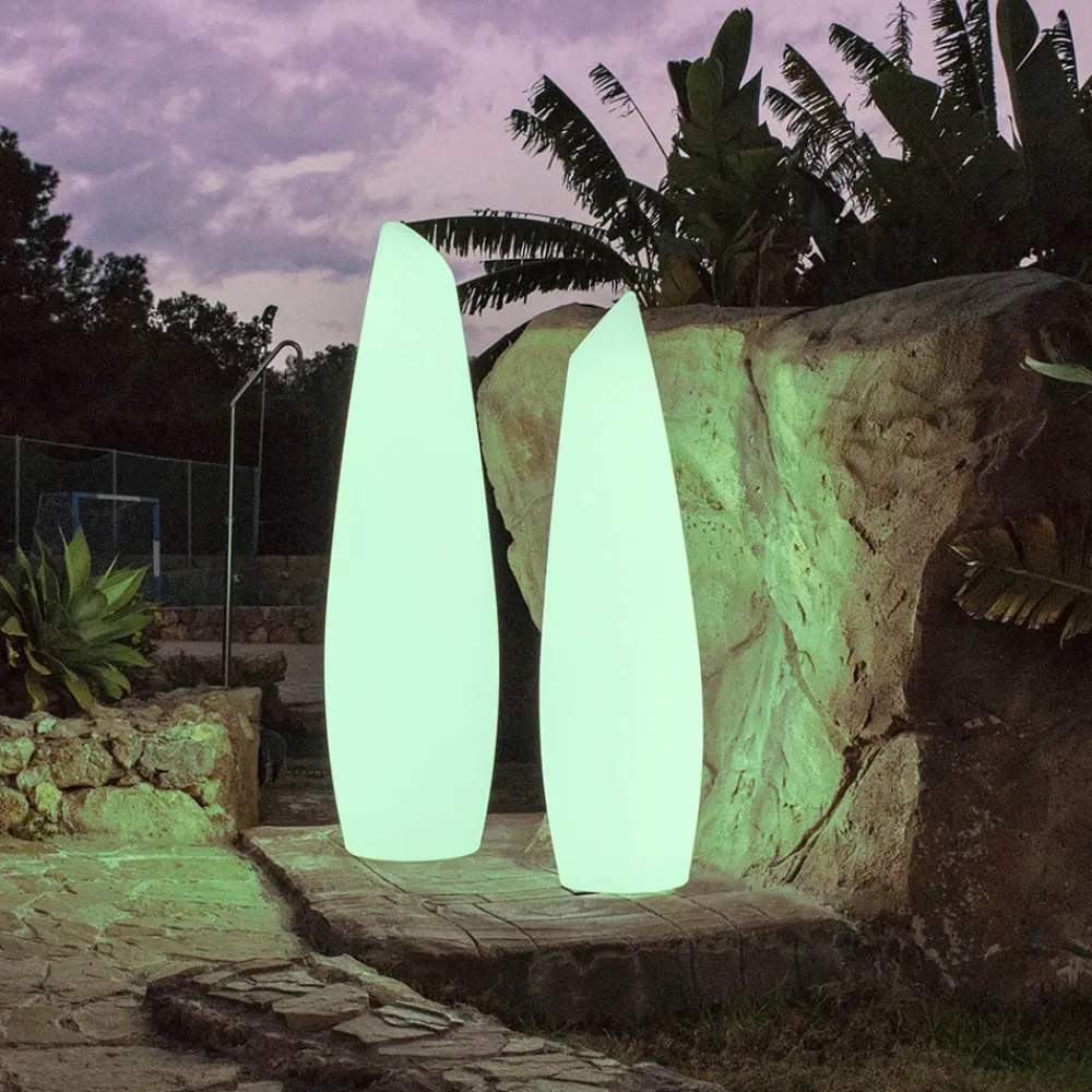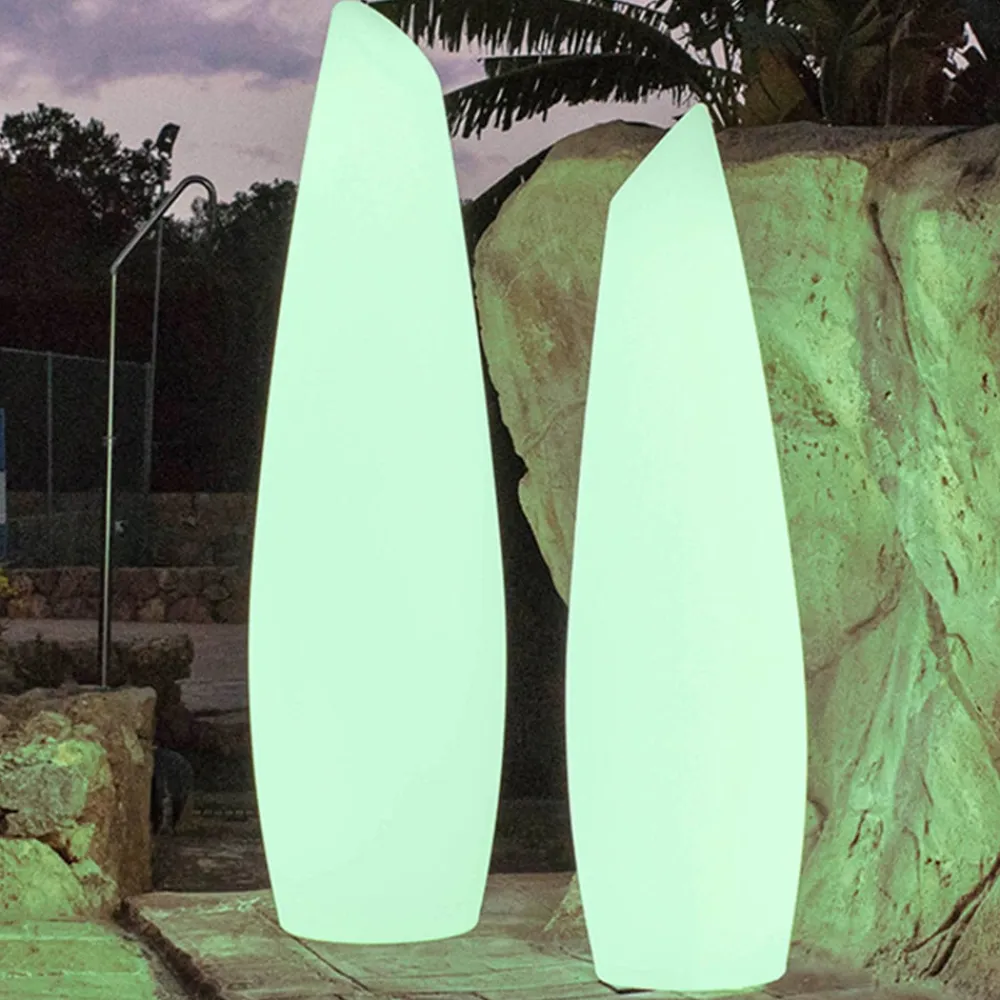 Batteridrevet LED-dekorationslampe Fredo af hvid polyethylen Stor fleksibilitet i lysdesignet og et dekorativt look i form af en overdimensioneret vase, samt at den er fremstillet af UV-bestandig polyethylen af høj kvalitet og udstyret med en kapslingsgrad på IP 54, gør LED-dekorationslampen Fredo til en dekorationslampe, der kan bruges både indendørs og udendørs. På private terrasser eller i en lang række kommercielle udendørs eller indendørs områder giver Fredo LED-gulvlampe farvet eller hvid belysning i dagslysets lysfarve og kan også dæmmes i en hvilken som helst valgt lysfarve. Alle lysindstillinger kan nemt justeres ved hjælp af den medfølgende fjernbetjening. Afhængigt af lysindstillingen lyser Fredo LED-gulvlampen helt uafhængigt i 8 til 12 timer på et fuldt opladet batteri. Der medfølger et ladekabel til genopladning af batteriet, opladningstiden er mellem 4 og 6 timer. Højkvalitetsbelysning til udendørs brug fremstillet af slidstærkt, UV-bestandigt polyethylen med lang levetid – det er den spanske belysningsproducent Newgardens speciale. 1 x 2000 mAh litiumbatteri