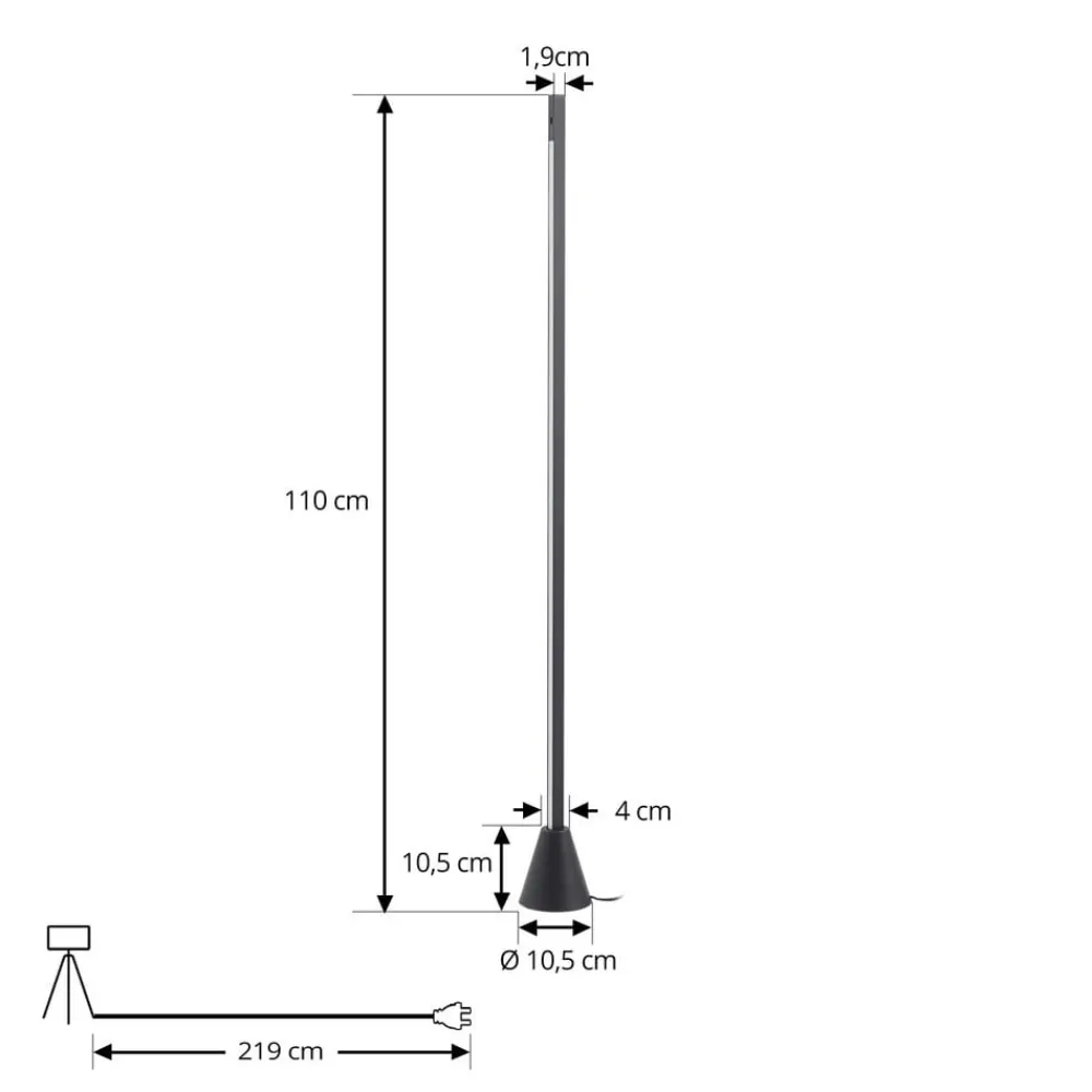 Moderne Linija LED-gulvlampe med praktisk bevægelseskontrol Oplev Linija LED-gulvlampen, en berigelse for enhver spise- eller dagligstue. Med sit moderne design passer den problemfrit ind i moderne interiør og er et blikfang i ethvert rum. Den integrerede LED-gulvlampe lover ikke kun en lang levetid, men også effektiv belysning, der både sparer energi og skaber en behagelig atmosfære. Gulvlampen fra Lucande er udstyret med en dæmper, der betjenes med bevægelseskontrol og giver dig mulighed for at justere lysstyrken efter behov. Tænd lyset ved blot at vifte med hånden foran sensoren. For præcis justering af lysstyrken holder du hånden foran sensoren og oplever, hvordan lyset forsigtigt lysner eller dæmpes. Uanset om du vil læse en bog, slappe af eller underholde venner, hjælper justering af lyset med at skabe den stemning, du ønsker. Den sorte farve giver lyset et ekstra strejf af elegance og gør det til et alsidigt element i din Raumgestalt. Tekniske data bevægelsesstyring – registreringsområde 0-10cm