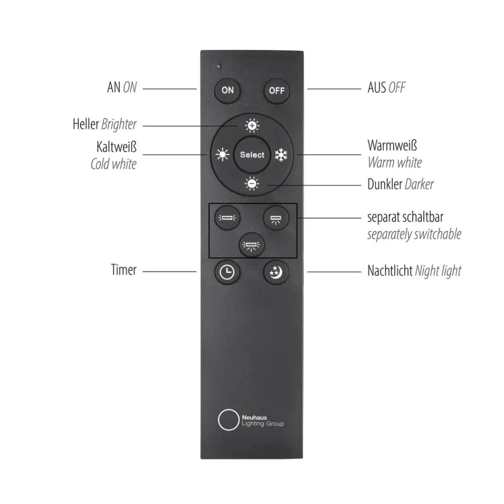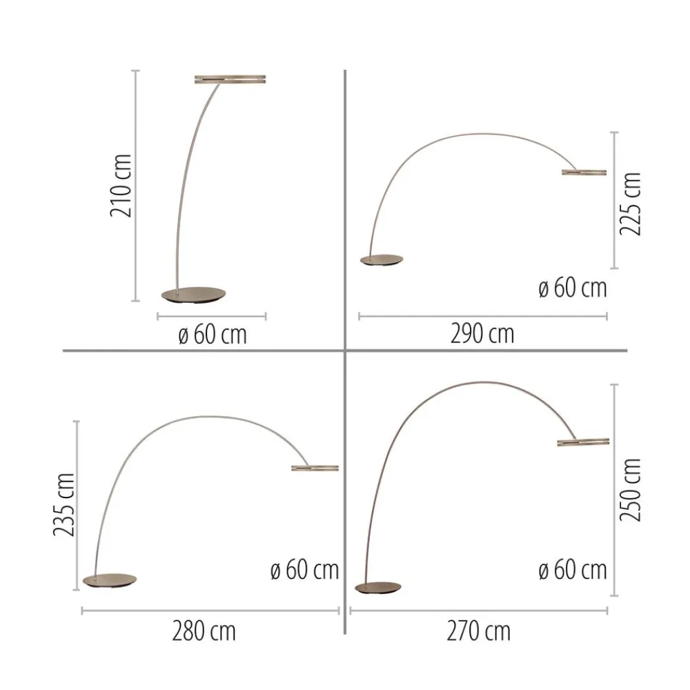LED-bue- eller gulvlampen Loop-Bow kombinerer ekstraordinært design med gennemtænkt funktionalitet og den nyeste belysningsteknologi. Med sin elegante, buede form bliver den et markant blikfang i bolig- eller arbejdsområder – uanset om den bruges som rumfyldende bue- eller klassisk gulvlampe. Lampen er udstyret med to kraftige LED-kort og tilbyder både opadrettet og downlight, som kan styres separat via integrerede berøringsflader. CCT-farvetemperaturstyringen gør det muligt at justere lysfarven trinløst via en trådløs fjernbetjening eller direkte via touch-dimmeren på lampen. Lysstyrken kan også reguleres trinløst. Takket være hukommelsesfunktionen gemmes alle tidligere valgte indstillinger og hentes direkte, når lampen tændes igen. Den integrerede timer- og natlysfunktion giver ikke kun ekstra komfort, men muliggør også automatisk lysstyring og blødt, blændfrit lys om aftenen – ideelt til afslappede nætter eller som orienteringshjælp i mørket. Et særligt kendetegn ved lampen er, at den både kan bruges som buelampe og gulvlampe. Før montering kan lampen indstilles i tre forskellige højder.