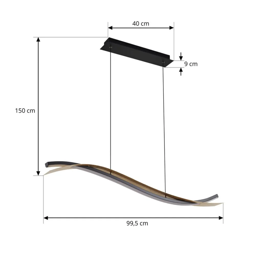 LED-hængelampe Alevia imponerer med sit elegante design i en harmonisk kombination af sort og guld. Den er fremstillet af højkvalitets jern, PVC og metal og passer perfekt ind i moderne spisestuer. Den integrerede LED-lyskilde sikrer en effektiv og langtidsholdbar belysning.