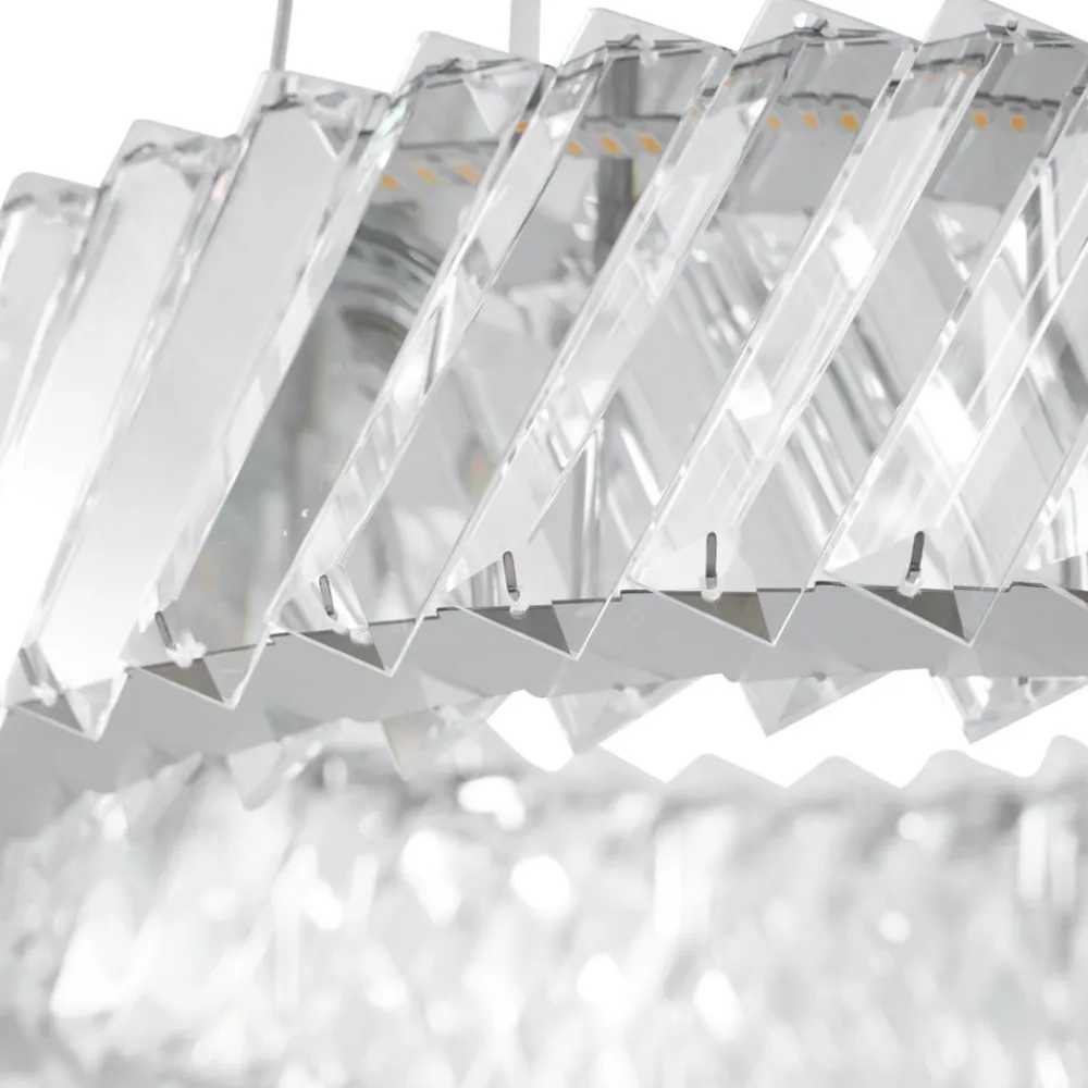 LED-hængelampe Glacis forener stilfuldt design med effektiv belysning. Denne lampe er fremstillet af højkvalitets K9-glas og stål og imponerer med sin klare og kromfarvede overflade, der giver ethvert rum et elegant præg. Den integrerede LED-lyskilde sikrer et energibesparende og varmhvidt lys, der skaber en behagelig atmosfære og reflekteres blidt i skærmen.