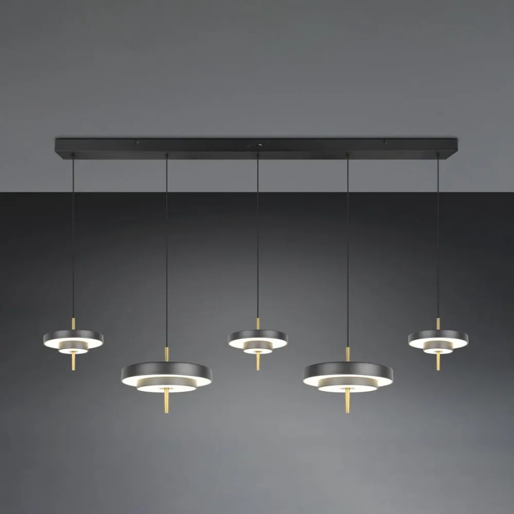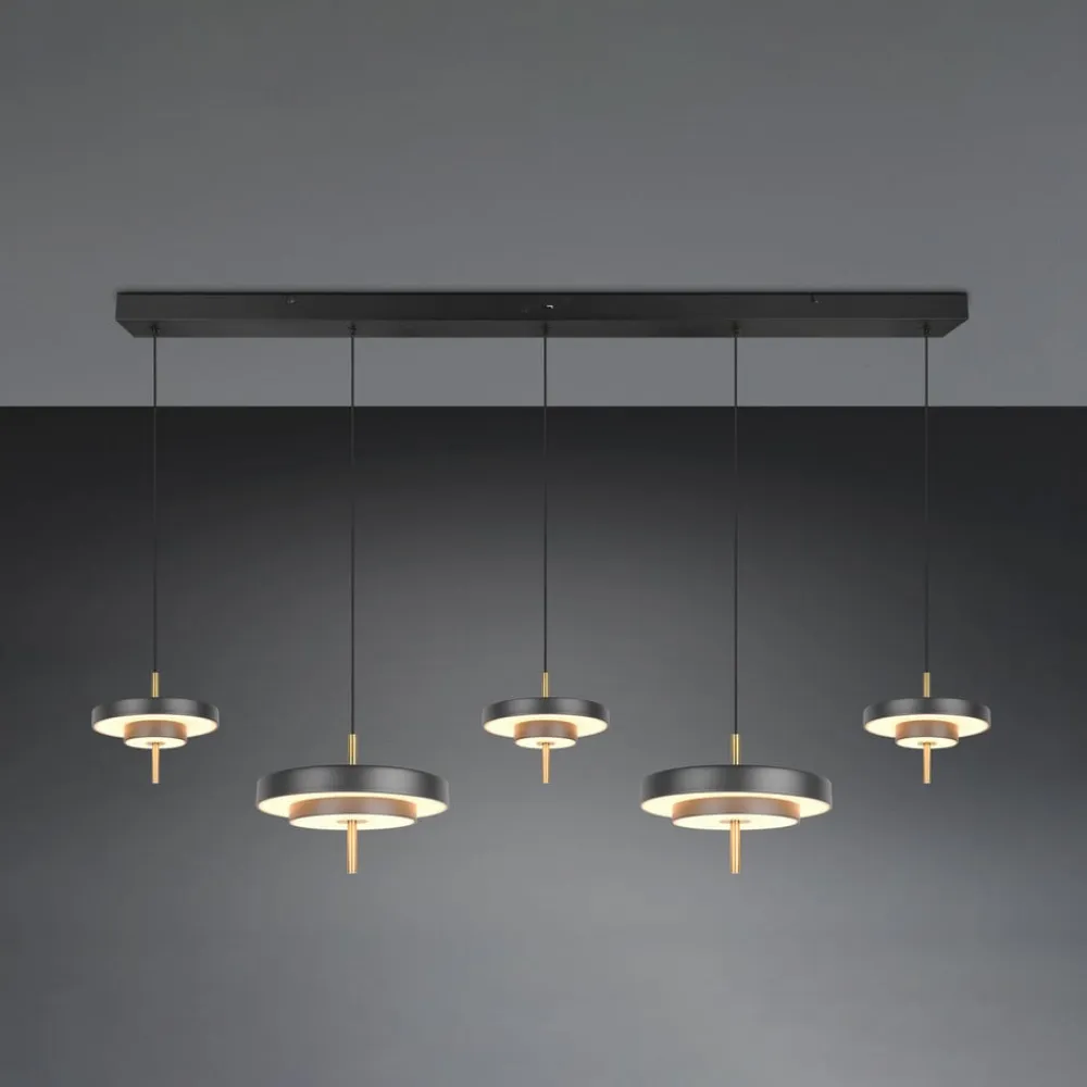 LED-hængelampe Keaton i sort-guld – 5 lyskilder